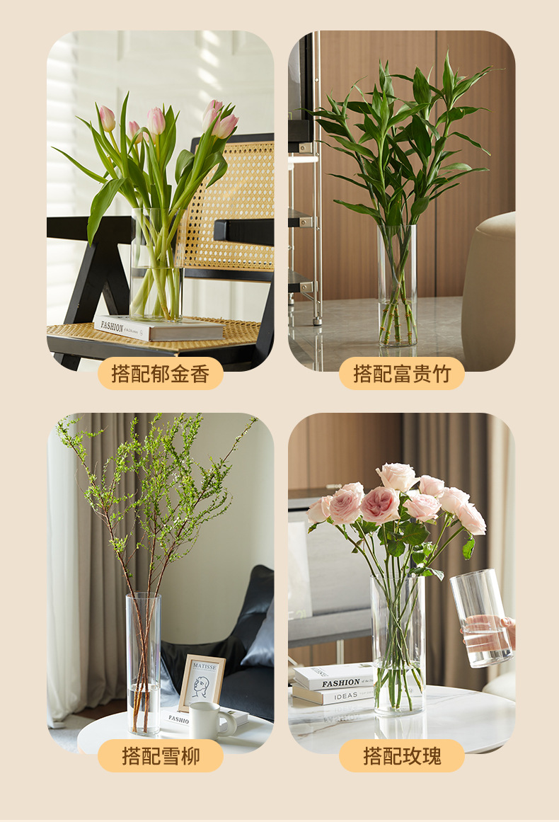 아크릴 가을 꽃병 수경법 꽃꽂이 풍부한 대나무 투명 스트레이트 아크릴 꽃 장식 거실 작은스토어 가기