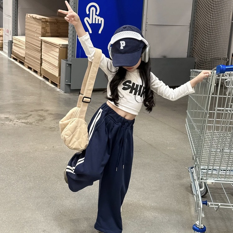 2026 봄 신상 한국 스타일 아동복 여아 패셔너블 슬림핏 레이스업 재즈 스타일 핫걸 티셔츠 스윗 쿨 베이직 티셔츠스토어 가기