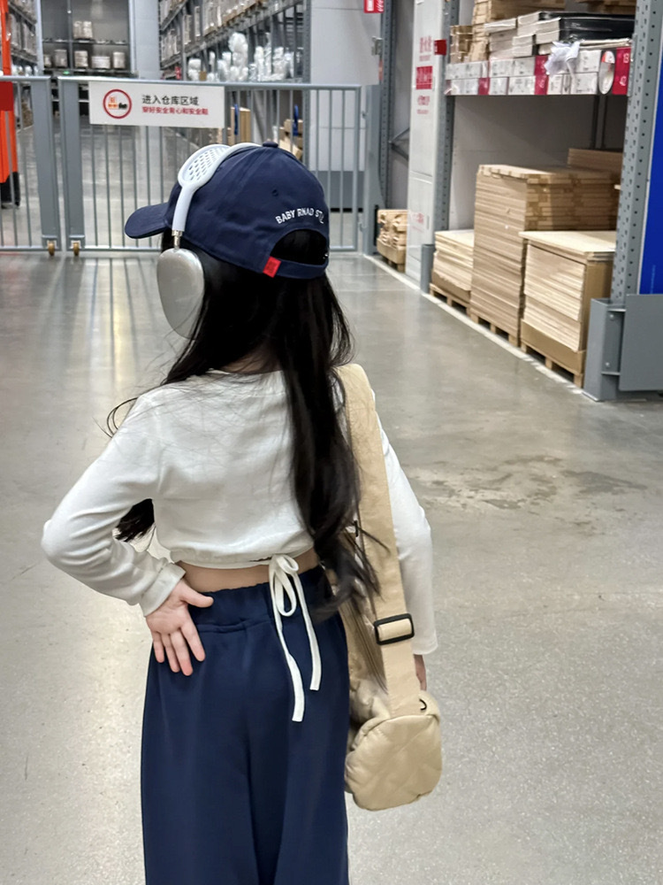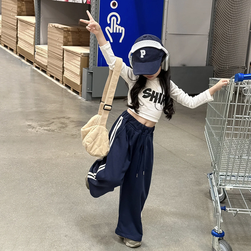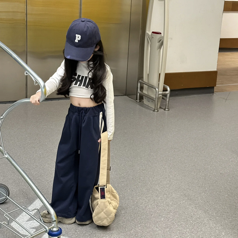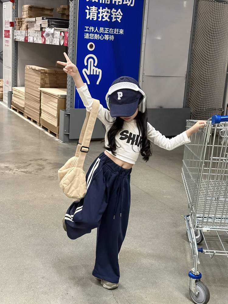 2026 봄 신상 한국 스타일 아동복 여아 패셔너블 슬림핏 레이스업 재즈 스타일 핫걸 티셔츠 스윗 쿨 베이직 티셔츠