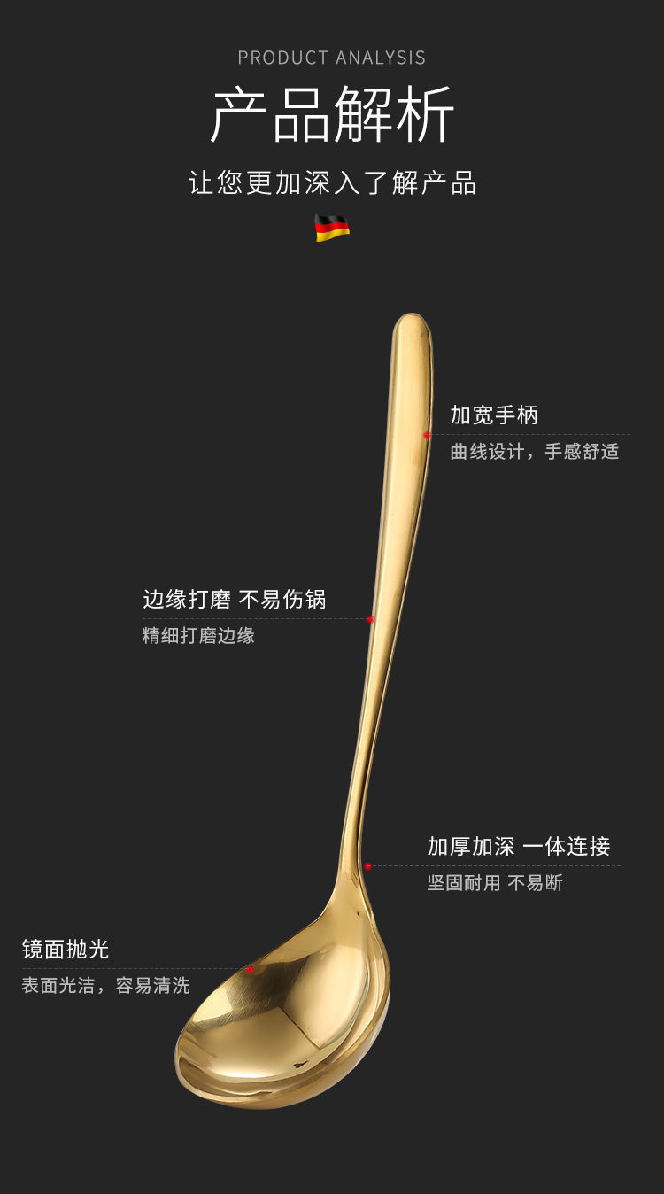 • 304 긴 손잡이 큰 머리 숟가락 (금)
