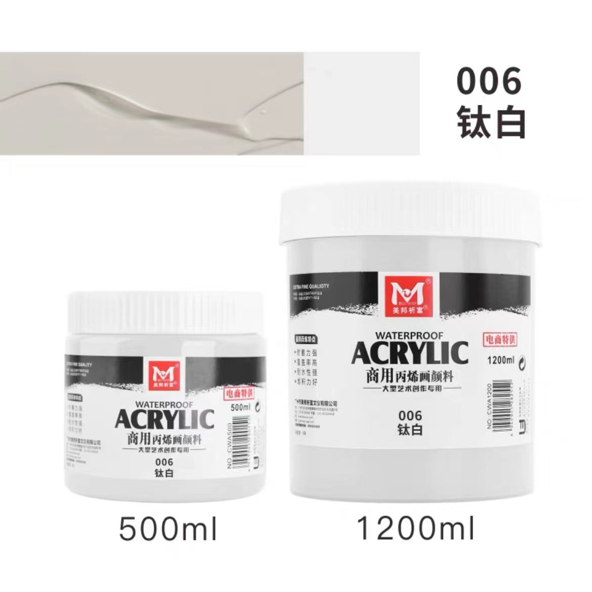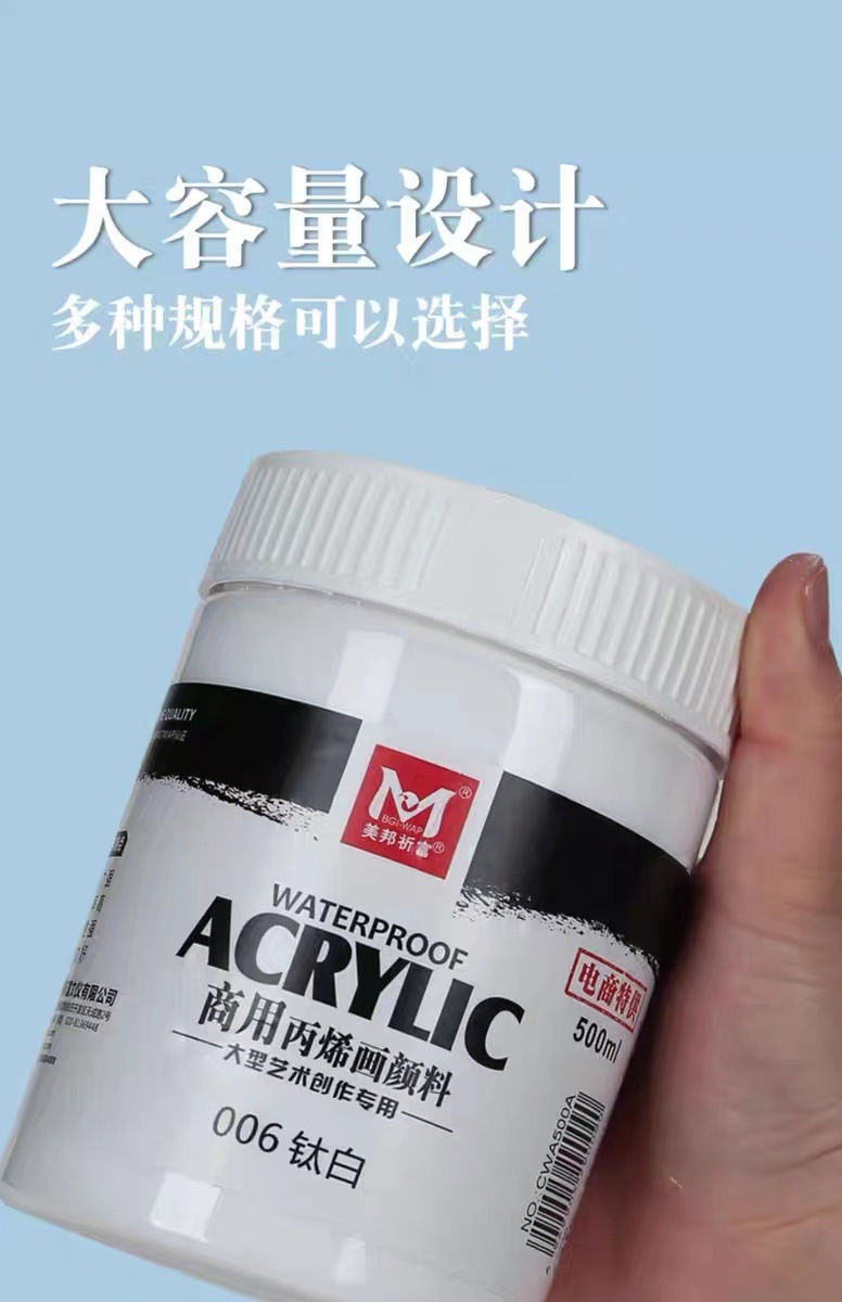 메이방 대용량 화이트 아크릴 안료 병 300ml500 통조림 벽 그림 방수 선 스크린 안료