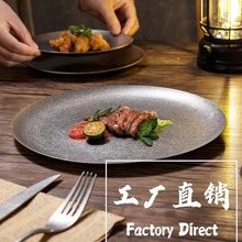 创意家用商用304复古做旧不锈钢餐具高级西餐厅牛排盘平盘子菜盘
