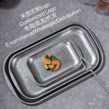 304复古做旧不锈钢托盘盘子菜盘创意餐盘复古风方形锥形鱼盘批发