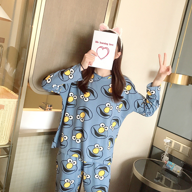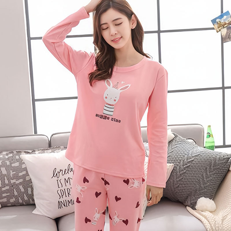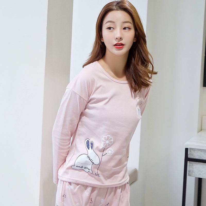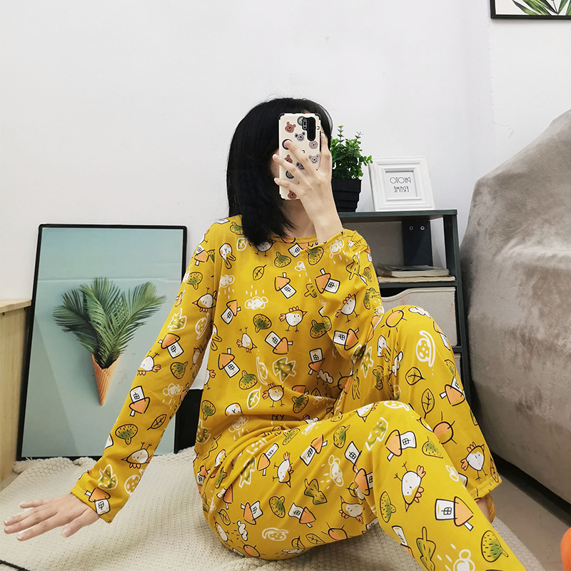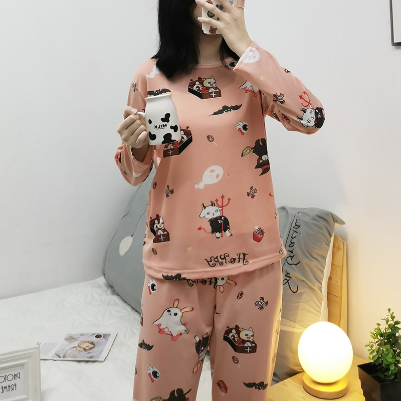 봄과 가을 새로운 긴팔 잠옷 여성 바지 플러스 사이즈 귀여운 만화 잠옷 여성의 겨울 홈 웨어 세트 공장 직접 판매스토어 가기