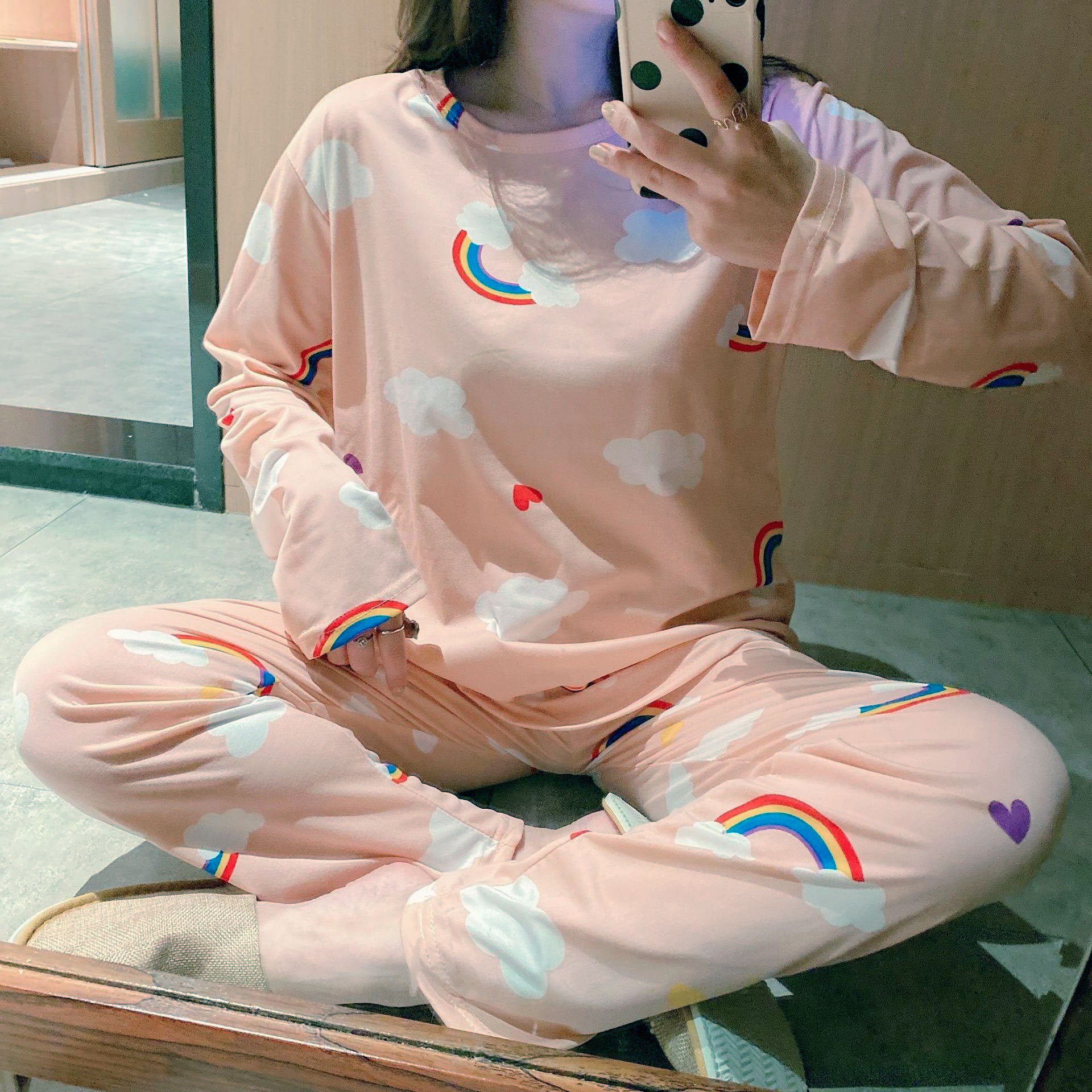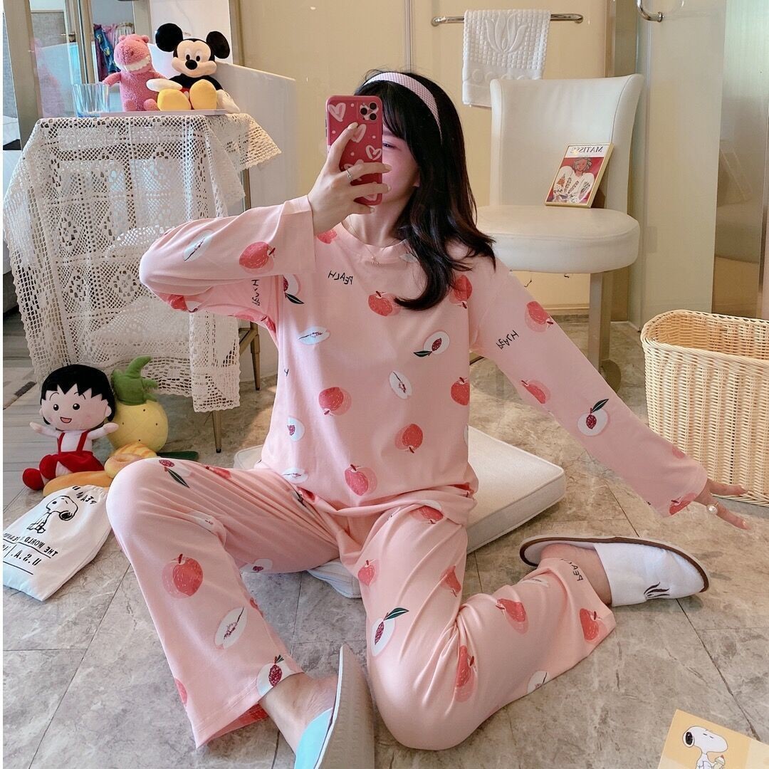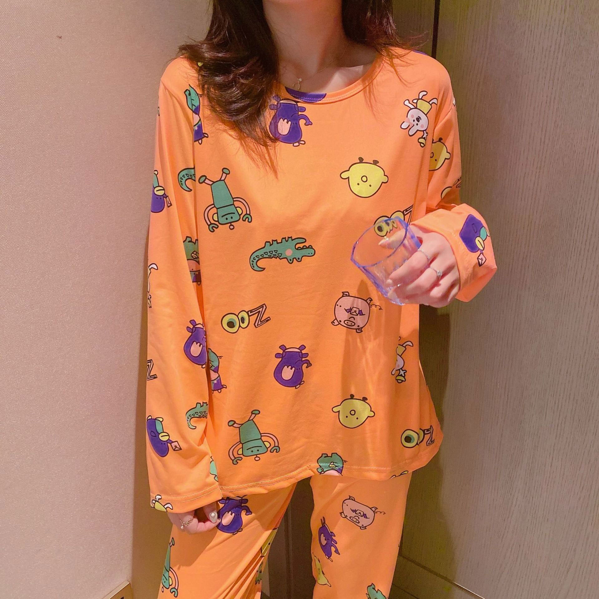 봄과 가을 새로운 긴팔 잠옷 여성 바지 플러스 사이즈 귀여운 만화 잠옷 여성의 겨울 홈 웨어 세트 공장 직접 판매스토어 가기