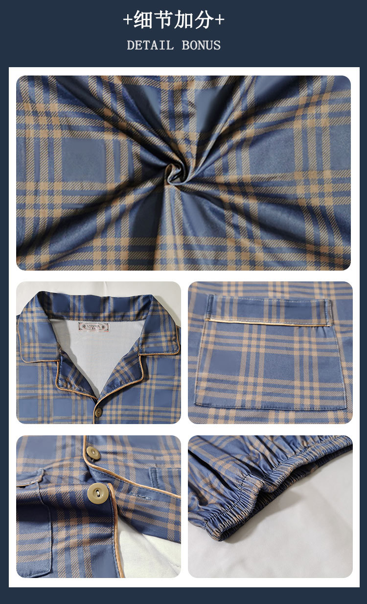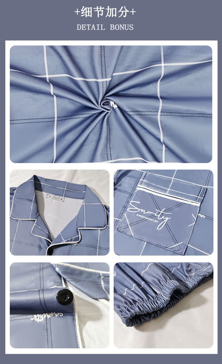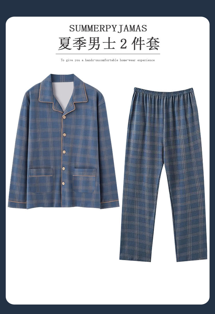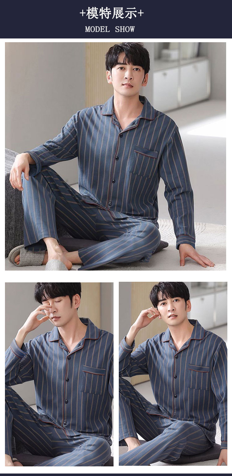 순수 코튼 잠옷 남성 봄, 가을 긴팔 코튼 얇은 격자 무늬 플러스 사이즈 100kg 홈웨어 외부에서 착용 가능스토어 가기
