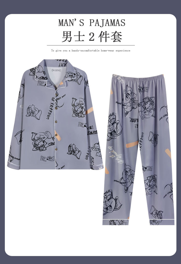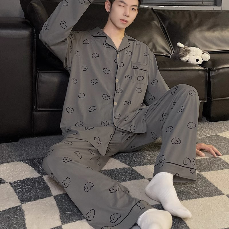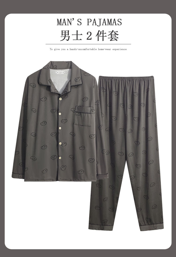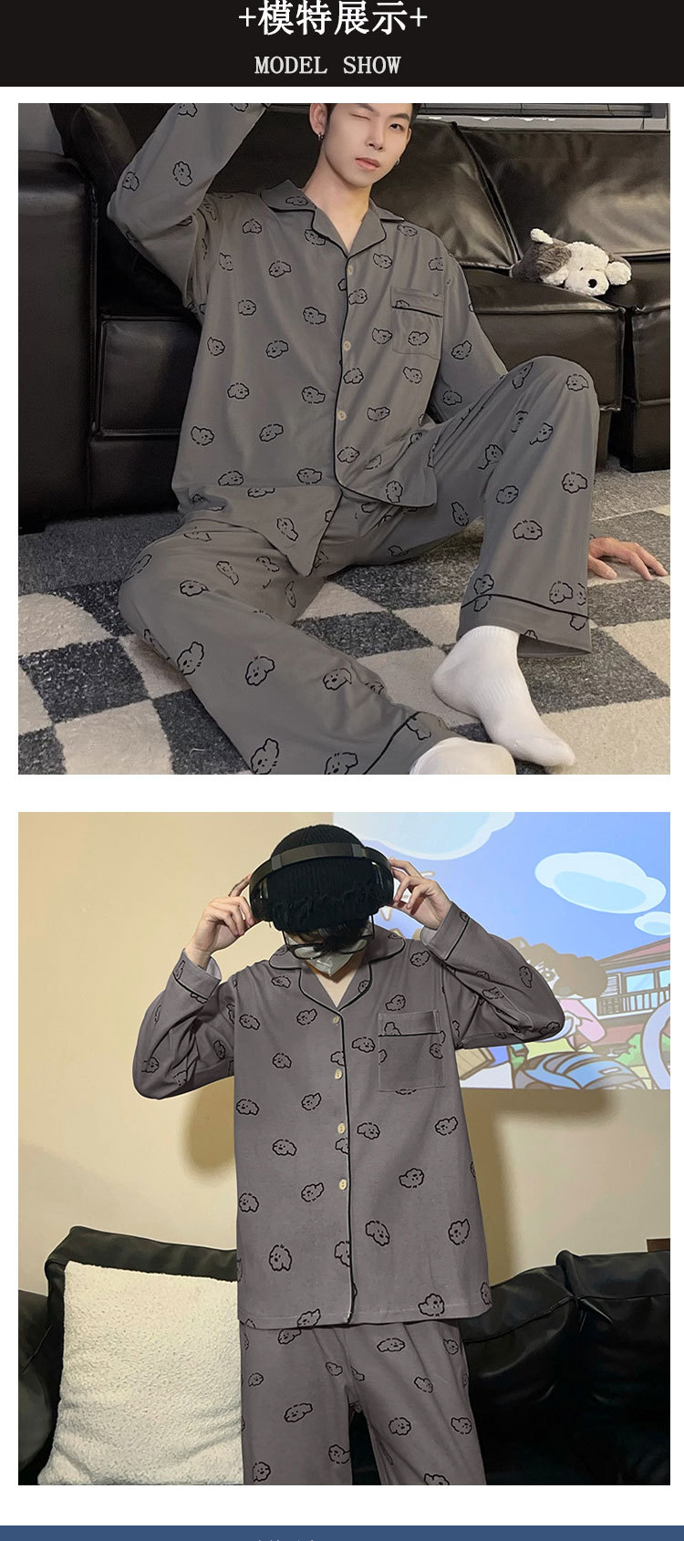 순수 코튼 잠옷 남성 봄, 가을 긴팔 코튼 얇은 격자 무늬 플러스 사이즈 100kg 홈웨어 외부에서 착용 가능스토어 가기