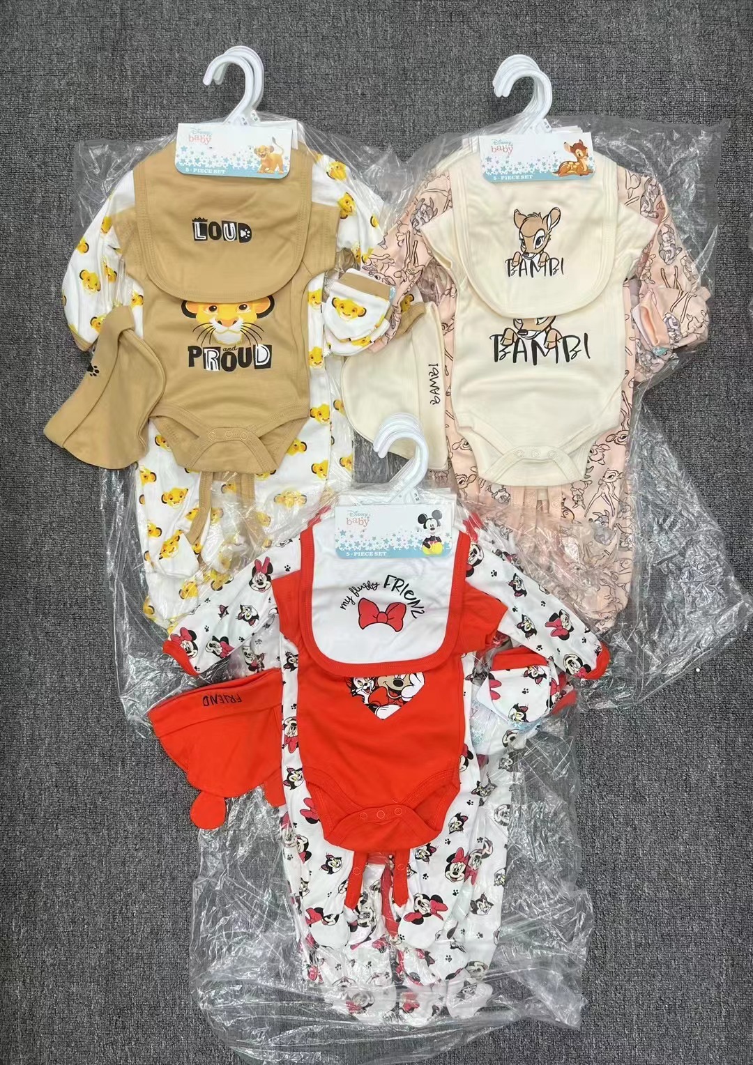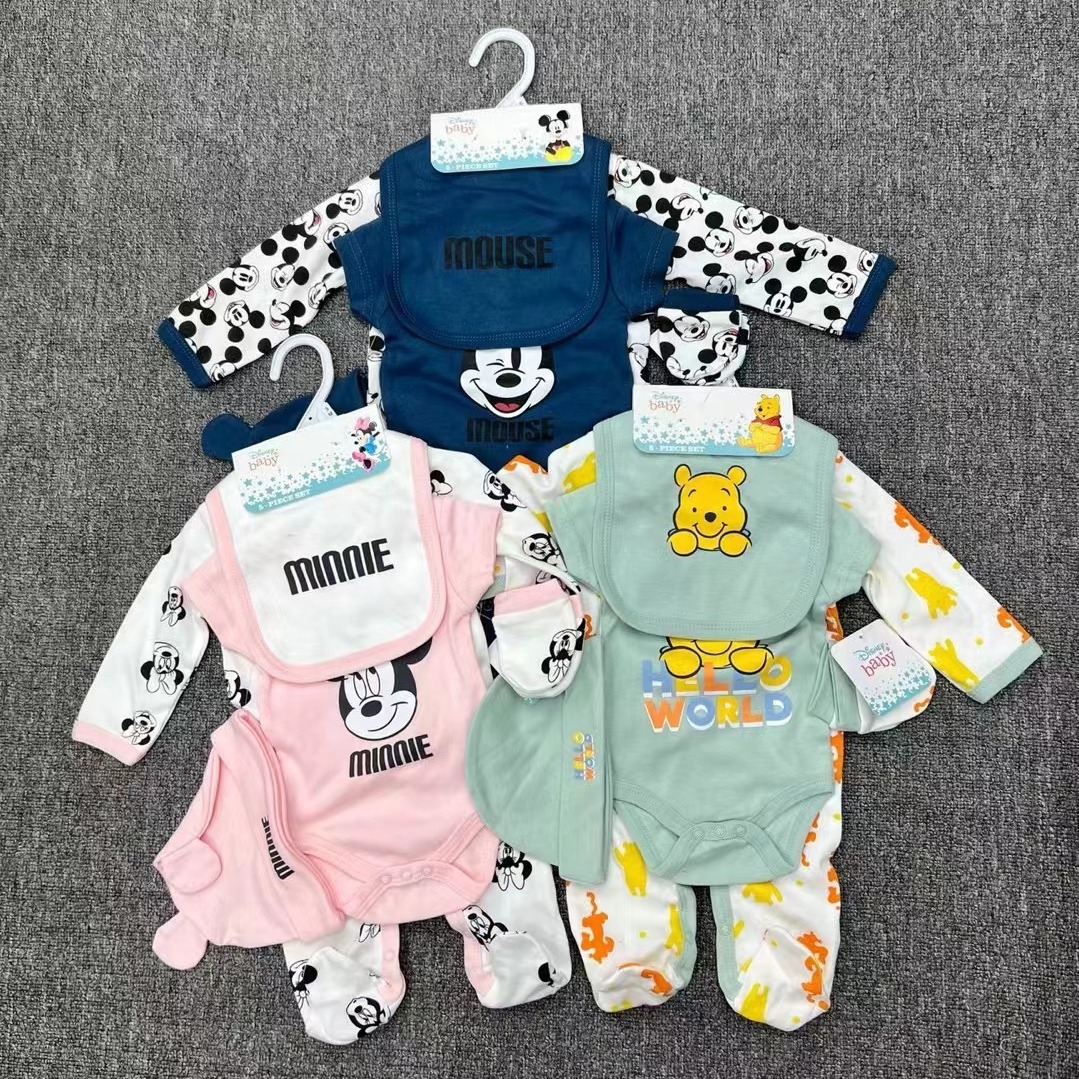 대외 무역 원래 단일 5 피스 아기 바지 아기 짧은 소매 긴 등반 턱받이 모자 장갑 5pcs스토어 가기
