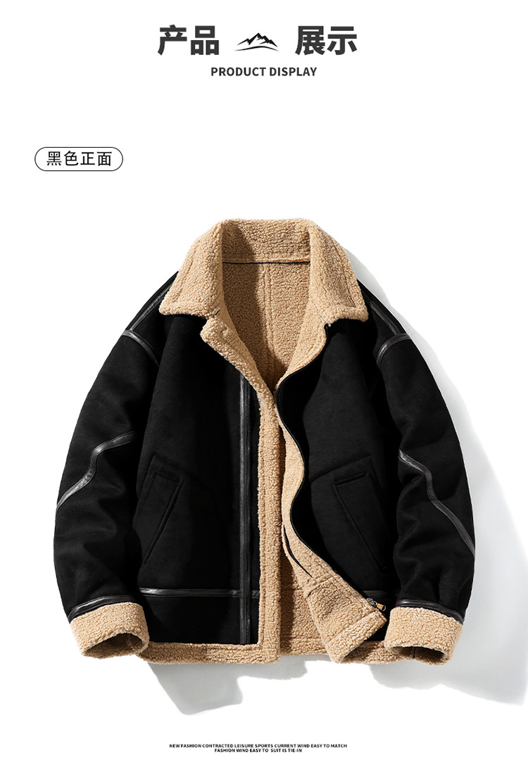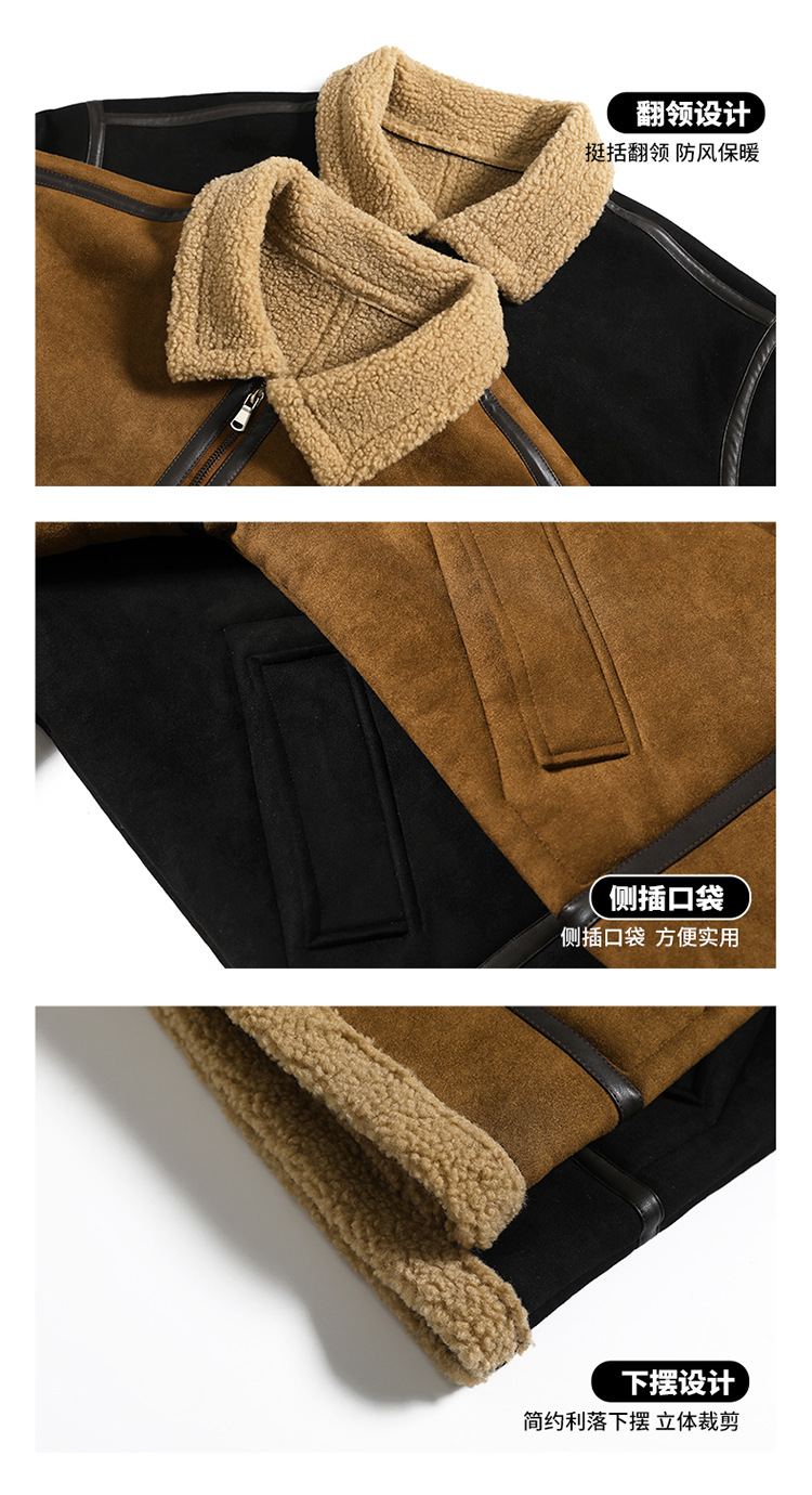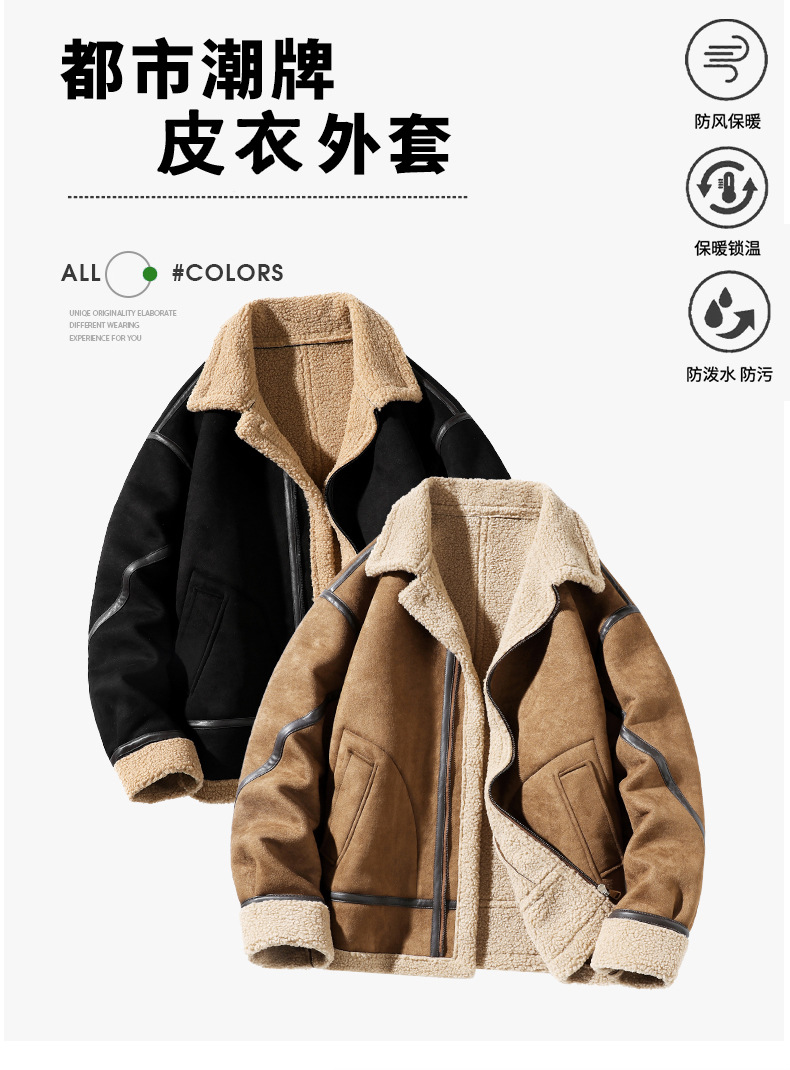 스웨이드 가죽 코트 남성 패션 브랜드 기모 두꺼운 모피 코트 느슨한 플러스 사이즈 옷깃 야외 가죽 재킷