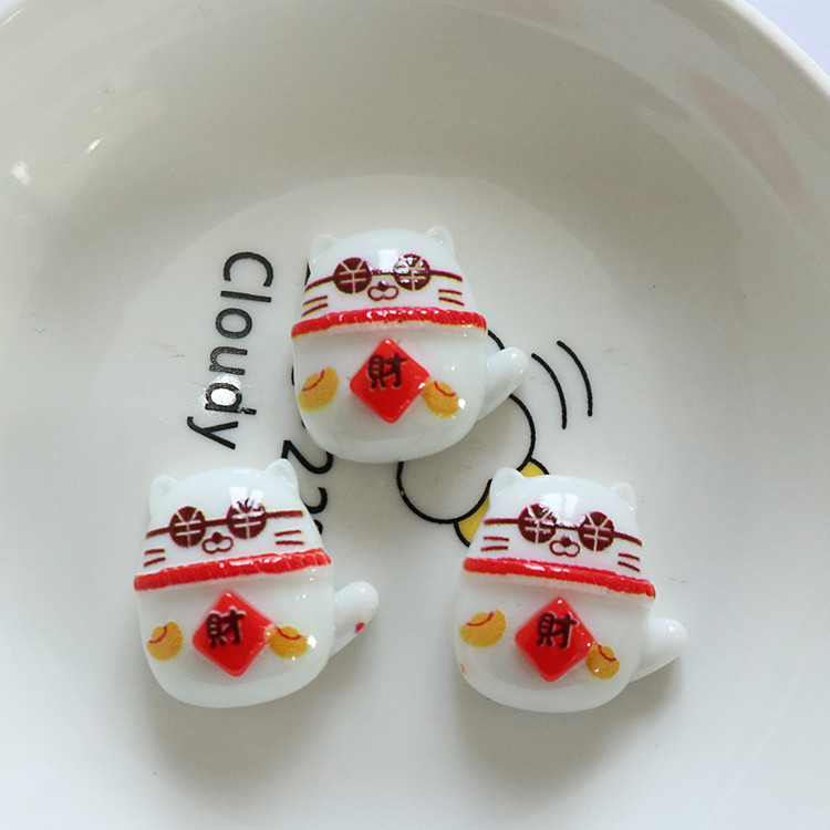 새해 축제 행운의 고양이 빨간 봉투 수지 장신구 액세서리 도매 헤어 액세서리 머리핀 구강 세척 컵 장식 패치