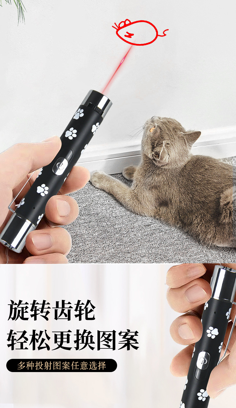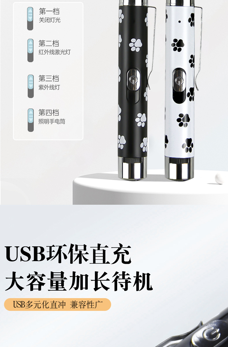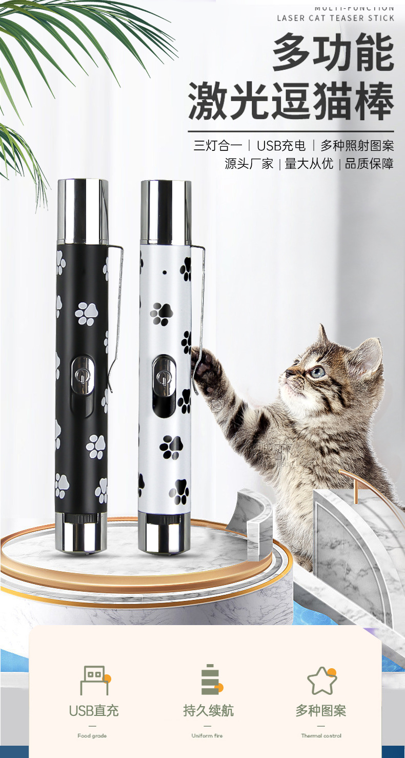 흑인과 백인 고양이 상호 작용하는 장난감 끈 USB 충전 다섯 패턴 실크 스크린 인쇄 펜홀더 레이저 고양이 테이 스틱