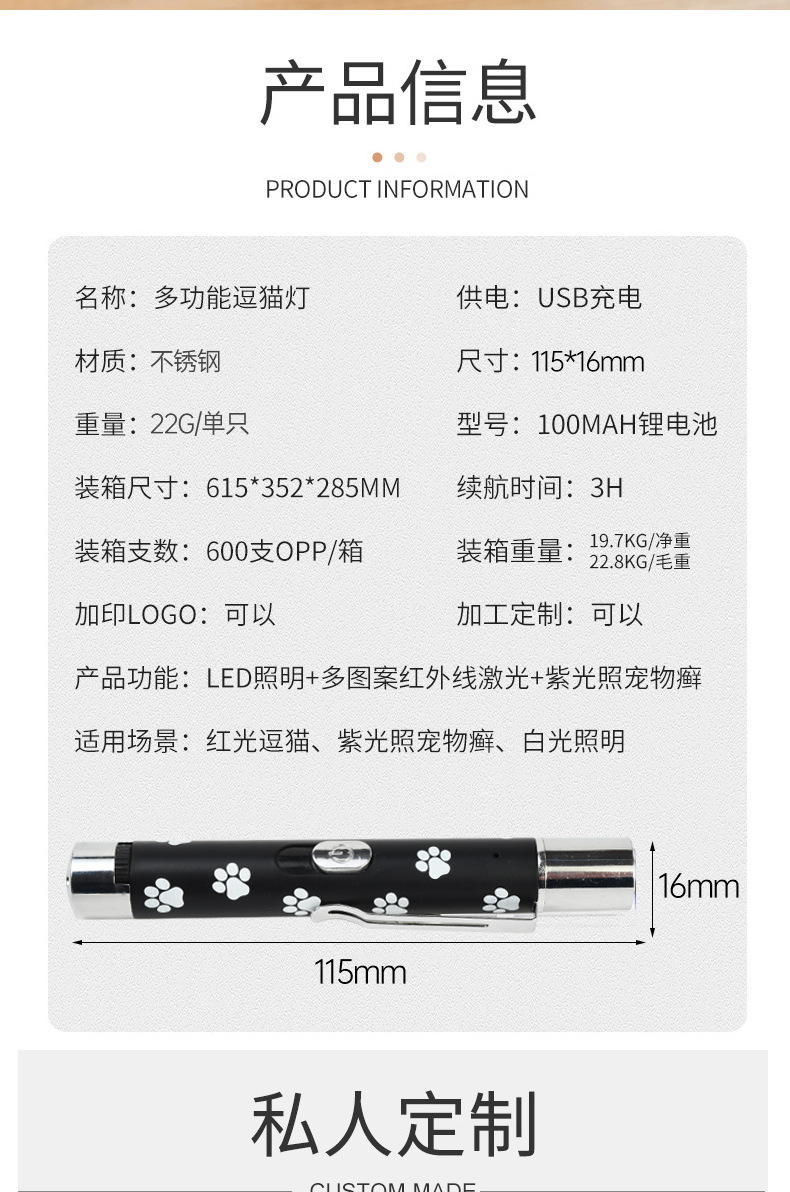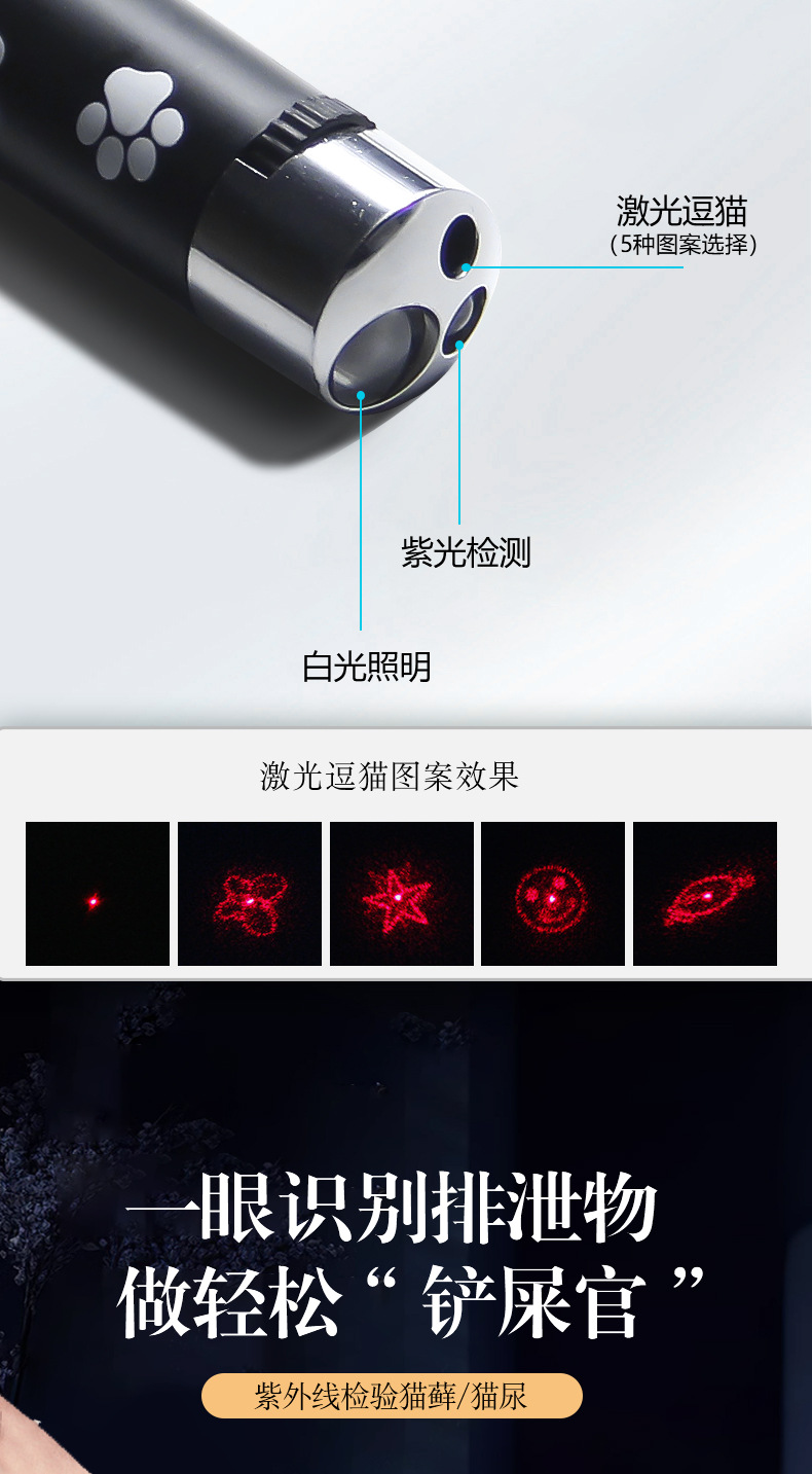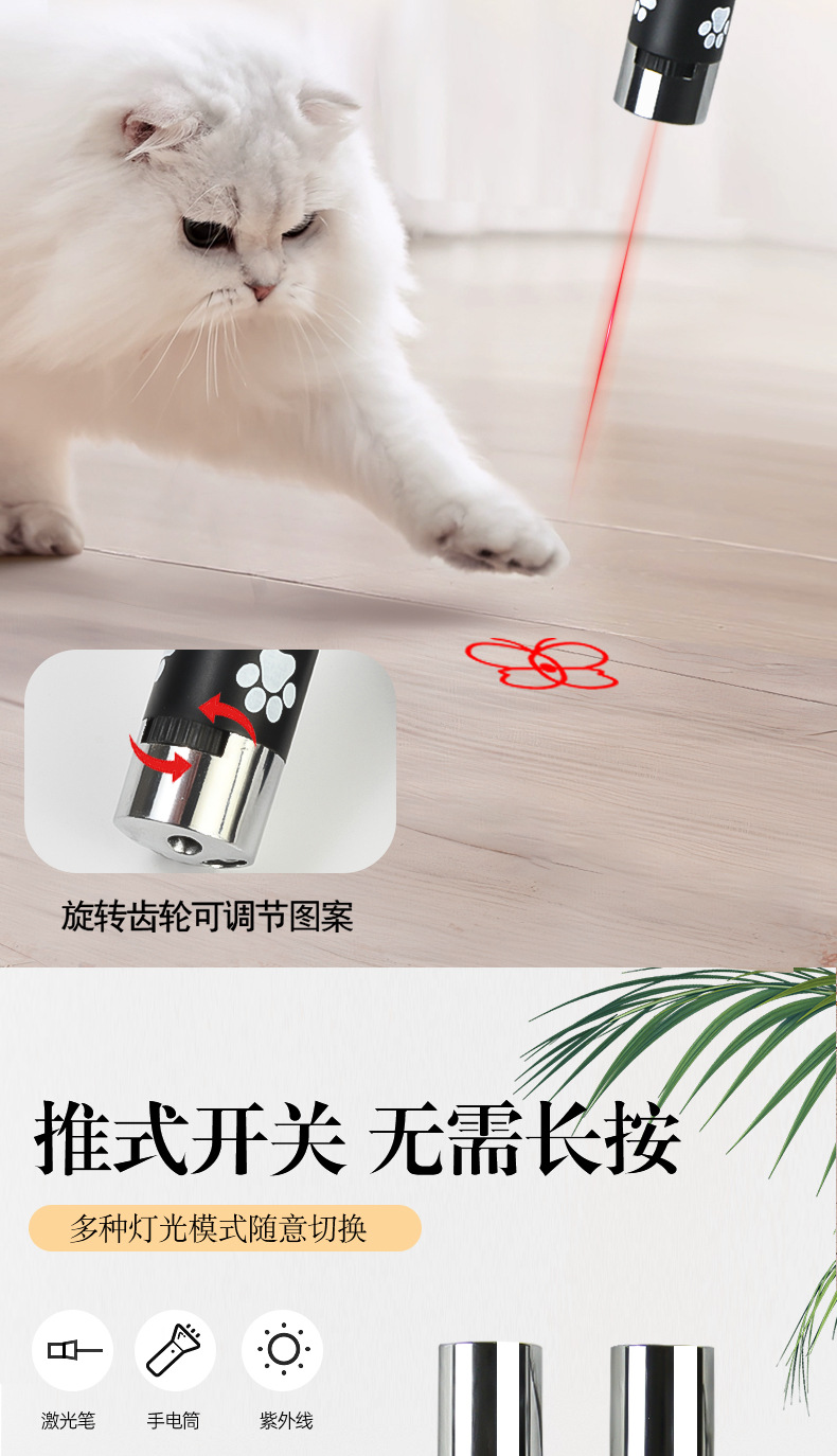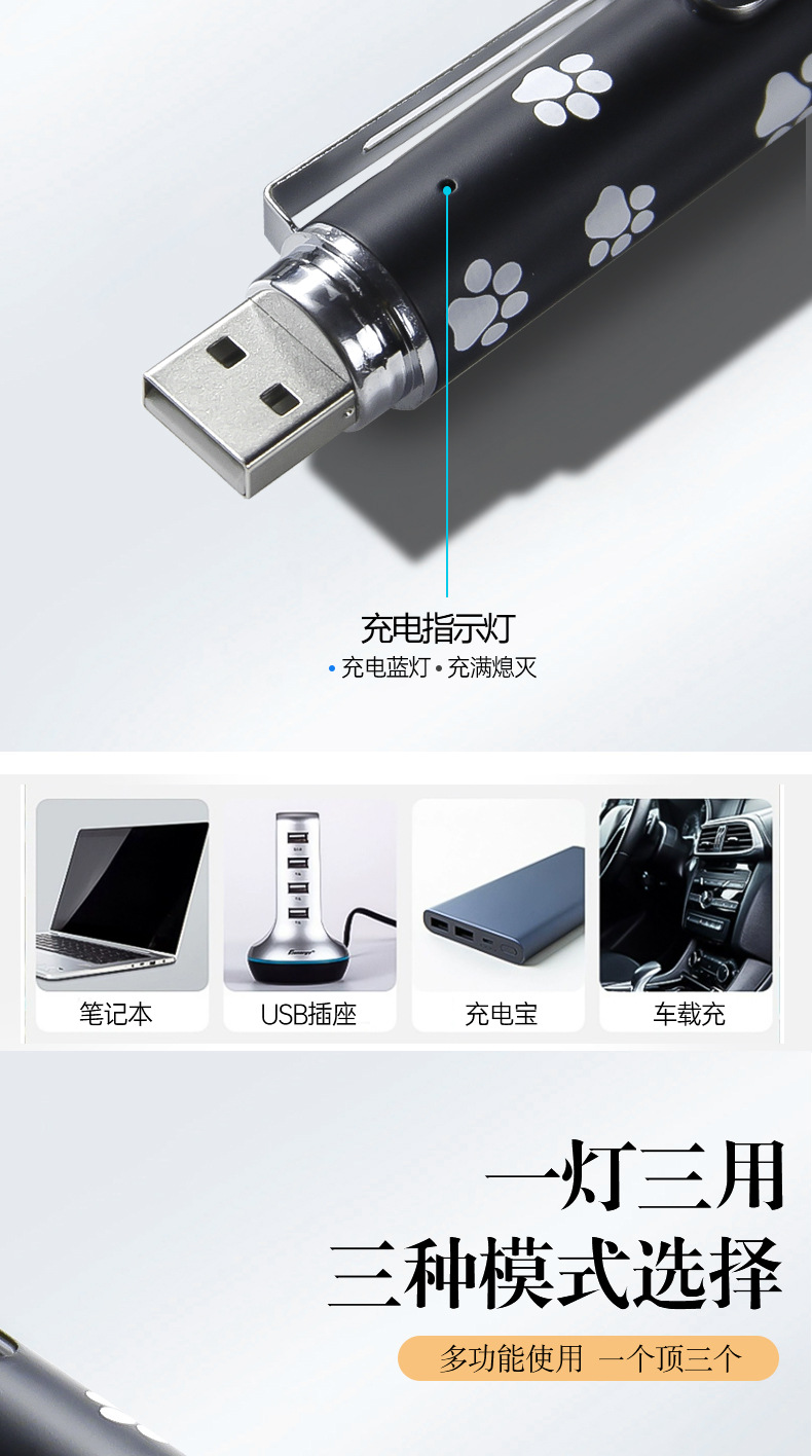 흑인과 백인 고양이 상호 작용하는 장난감 끈 USB 충전 다섯 패턴 실크 스크린 인쇄 펜홀더 레이저 고양이 테이 스틱
