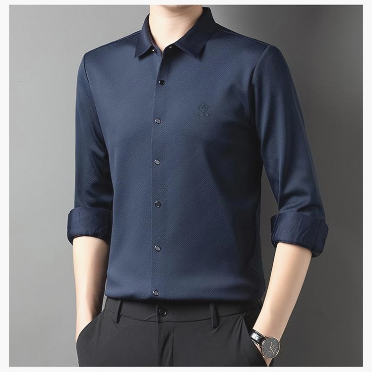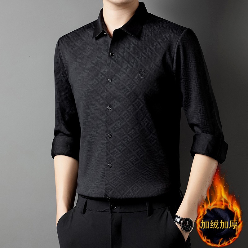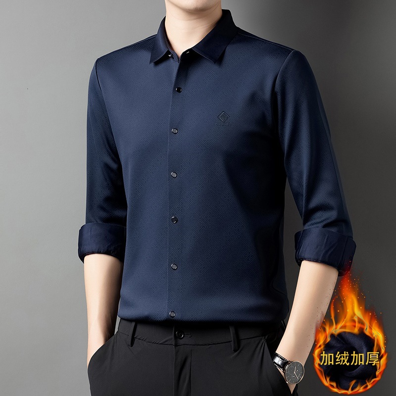 2023 Linghao 의류 겨울 주름 방지 셔츠 기모 두꺼운 남성 비즈니스 캐주얼 긴팔 티셔츠 따뜻한 탑스토어 가기