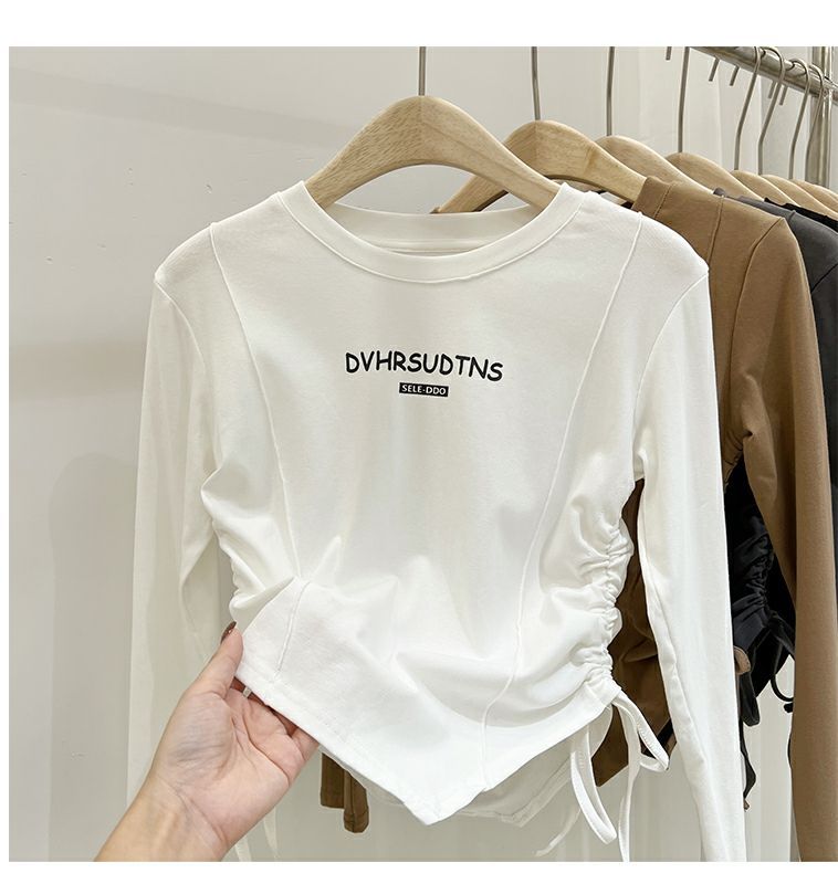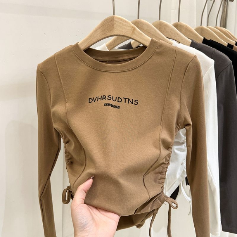 여아 가을 짧은 조임끈 탑 2025 신상 중대형 아동용 이너 레이어드 셔츠 아동용 세련된 긴팔 티셔츠