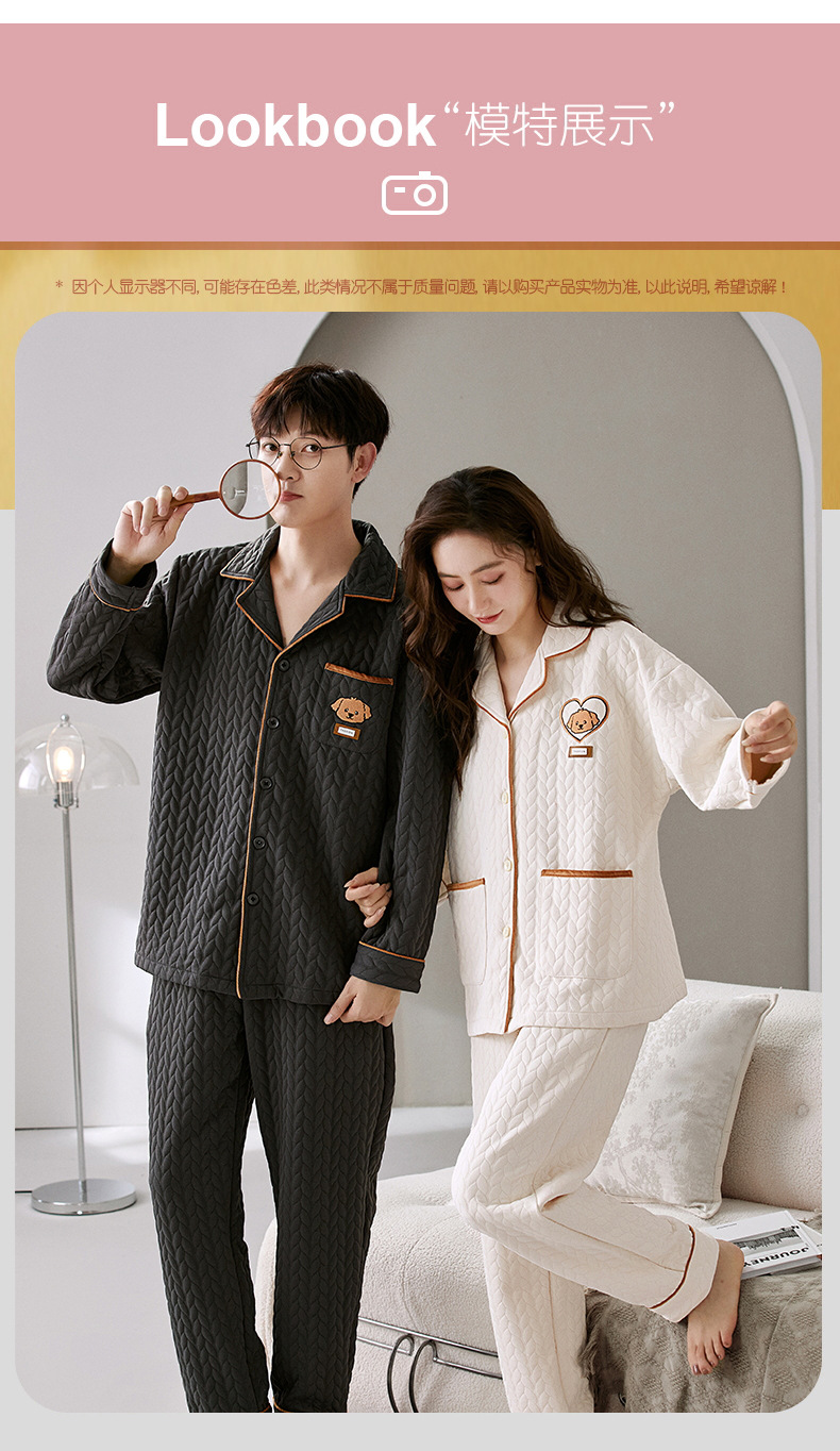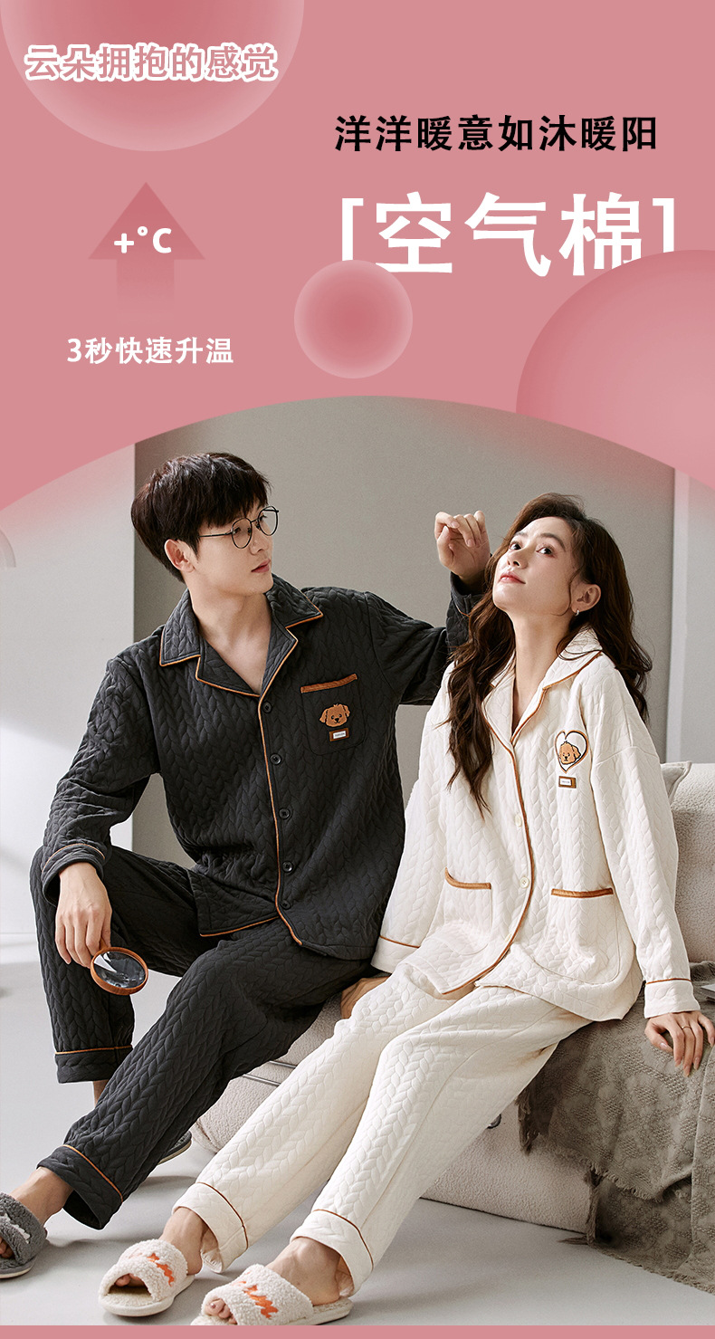 커플 잠옷 여성의 가을과 겨울 긴 소매 에어면 남성용 샌드위치가 두껍게 따뜻한 겨울 퀼트 홈웨어 세트스토어 가기