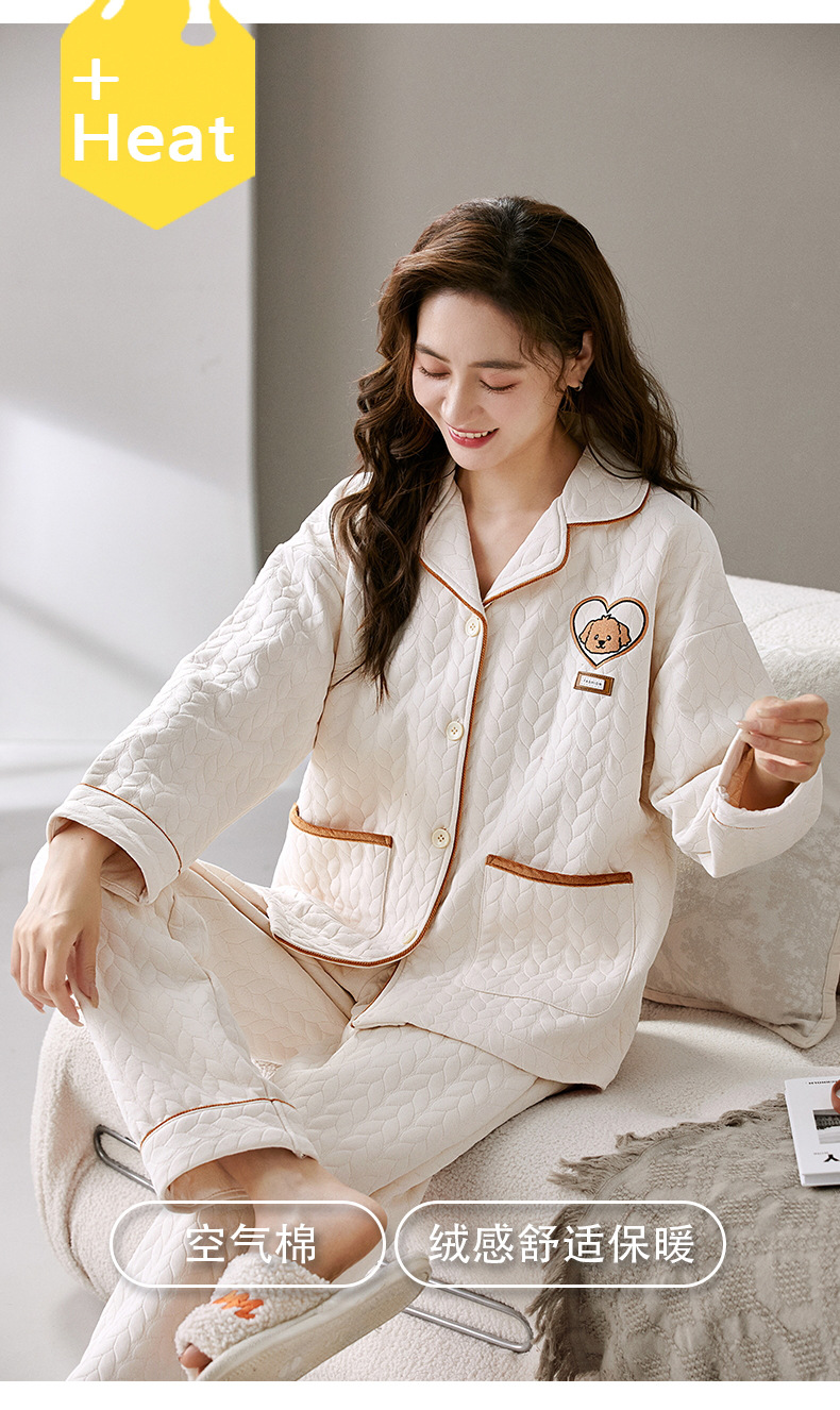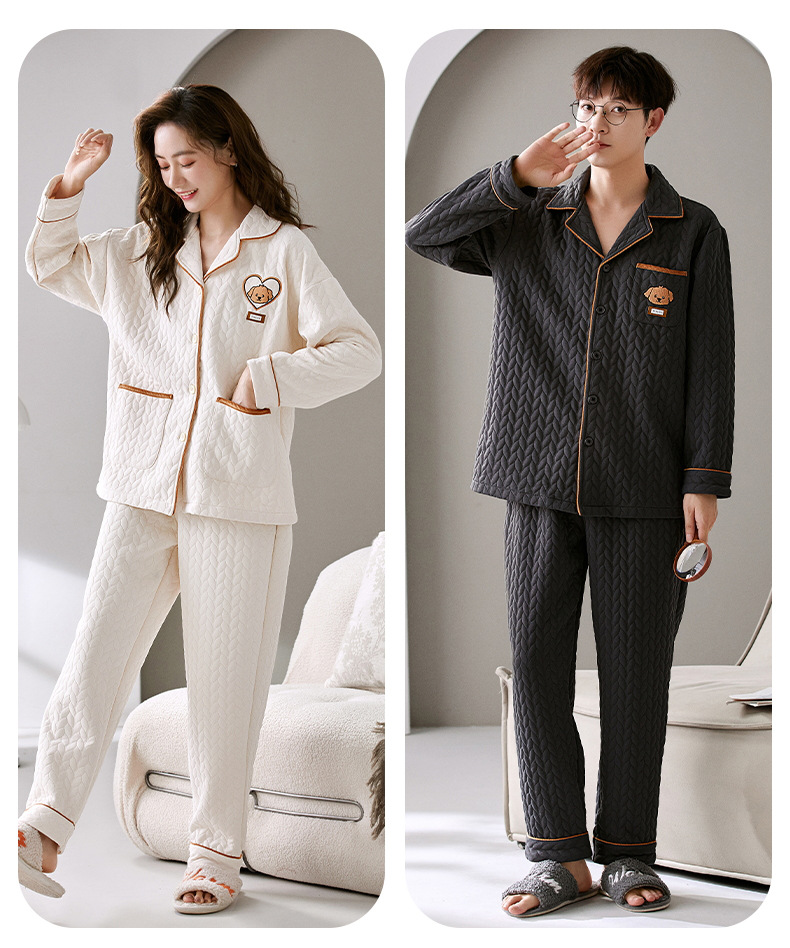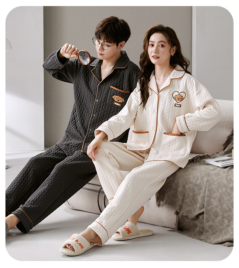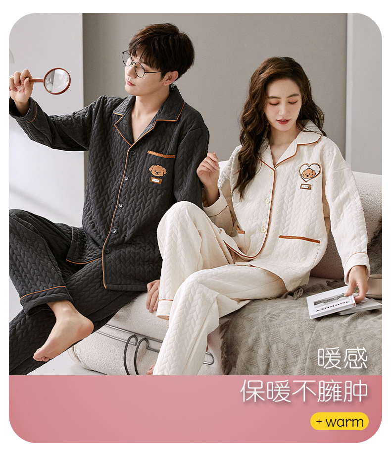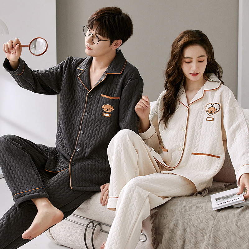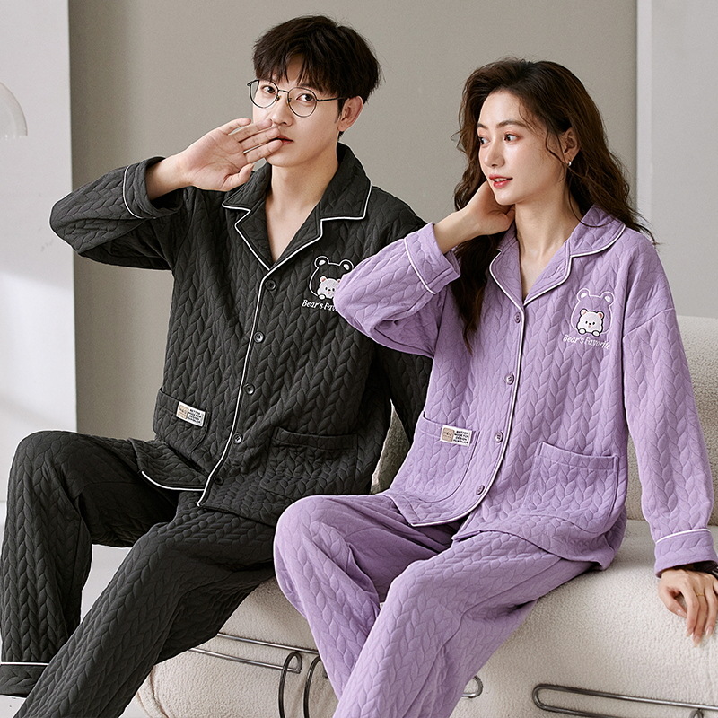 커플 잠옷 여성의 가을과 겨울 긴 소매 에어면 남성용 샌드위치가 두껍게 따뜻한 겨울 퀼트 홈웨어 세트