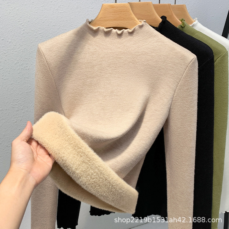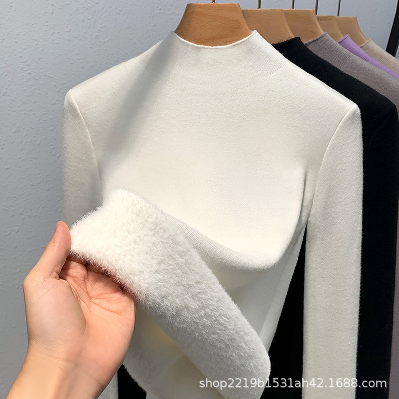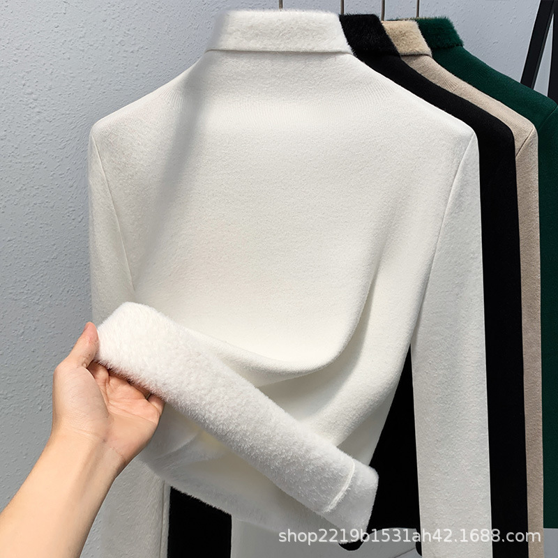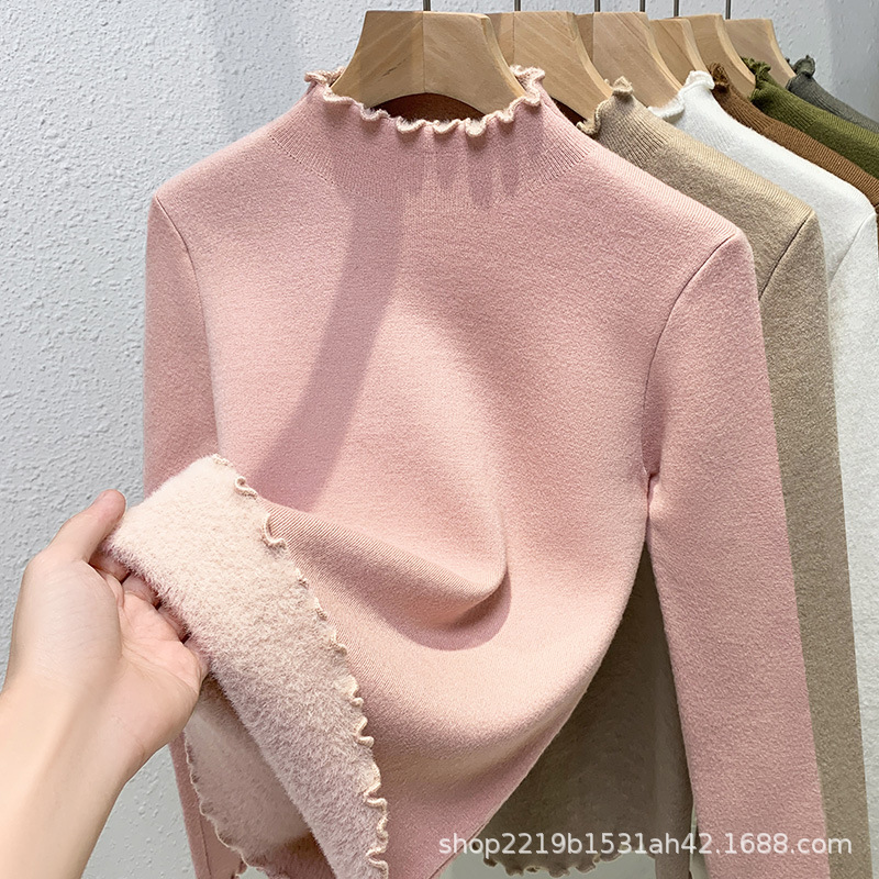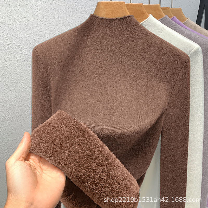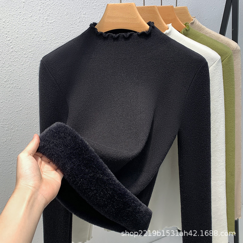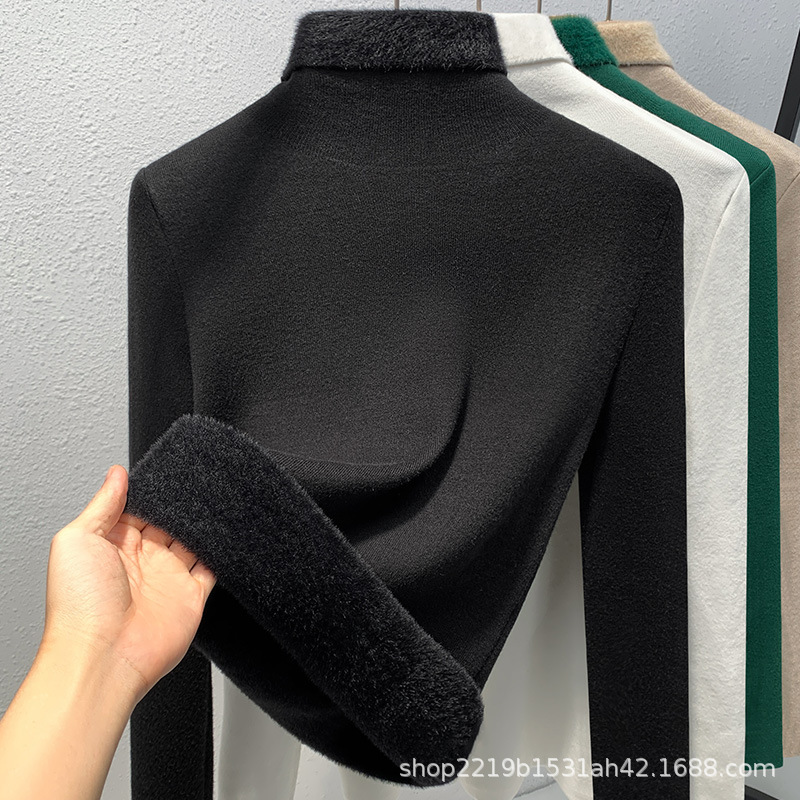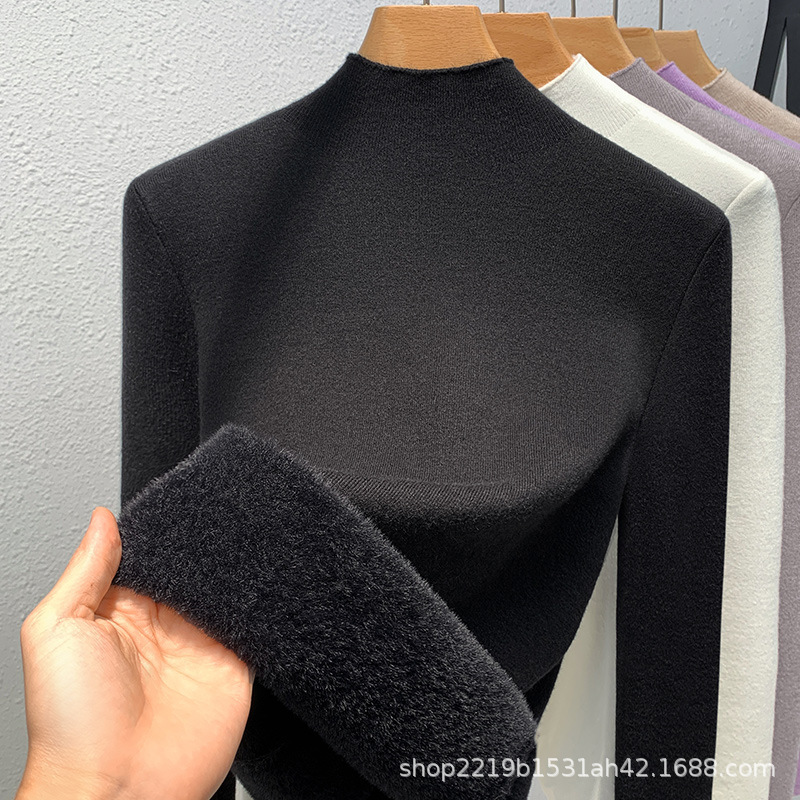니트 베이스 셔츠 여성용 2025 신상 여성 풀오버 스웨터 보온 이너웨어 플러스 벨벳 두꺼운 올인원 벨벳 탑스토어 가기