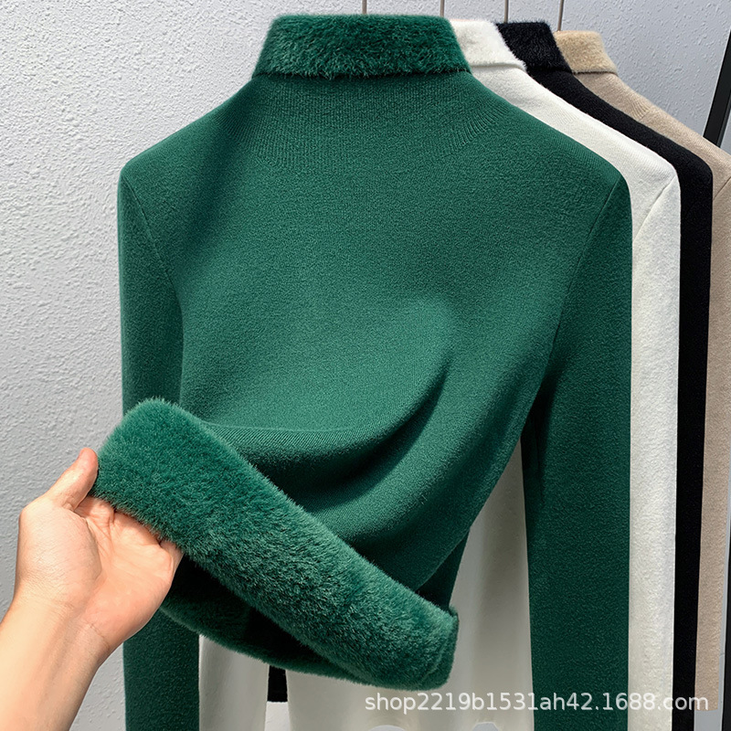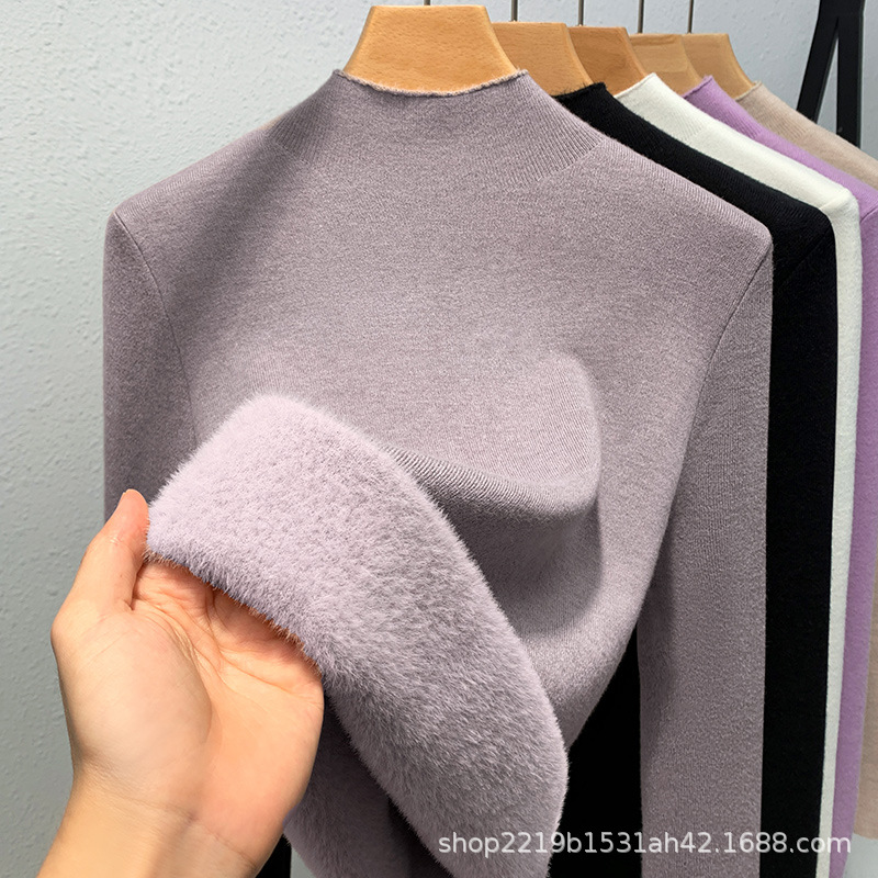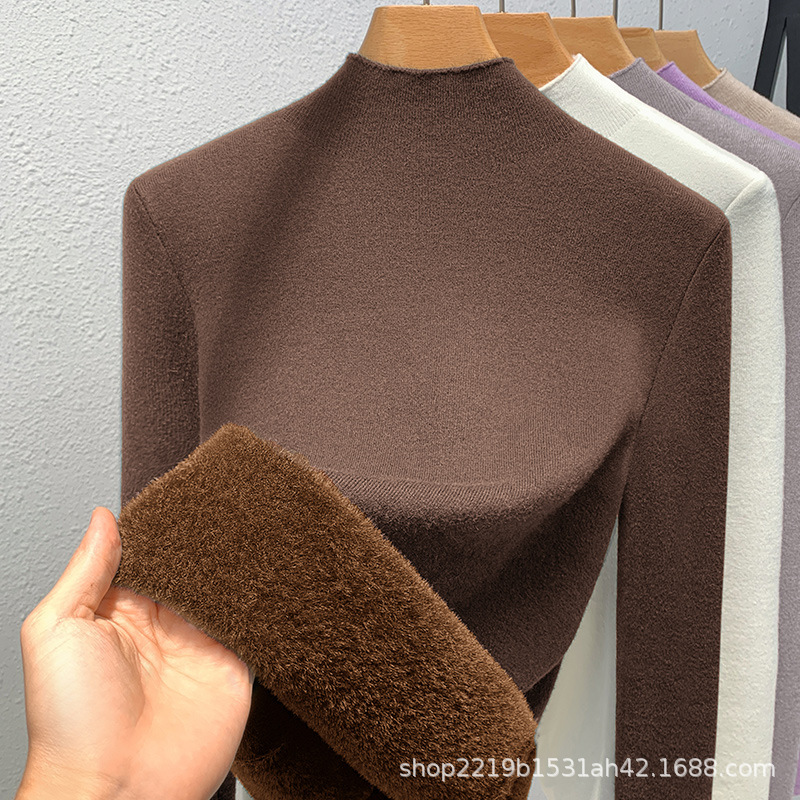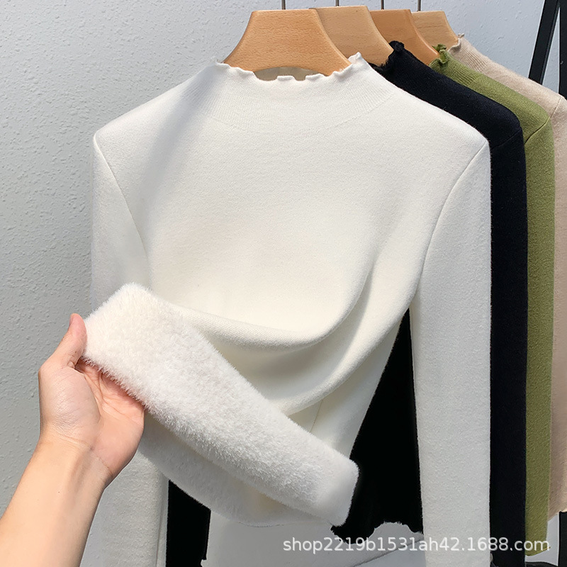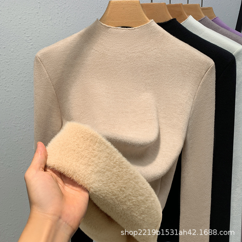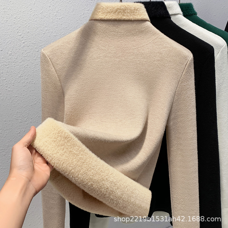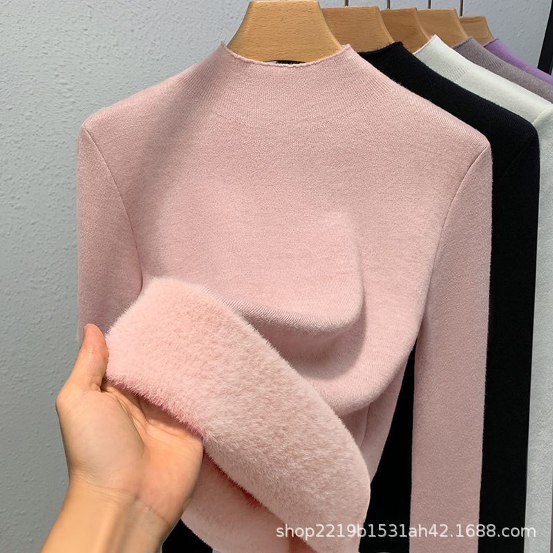 니트 베이스 셔츠 여성용 2025 신상 여성 풀오버 스웨터 보온 이너웨어 플러스 벨벳 두꺼운 올인원 벨벳 탑스토어 가기