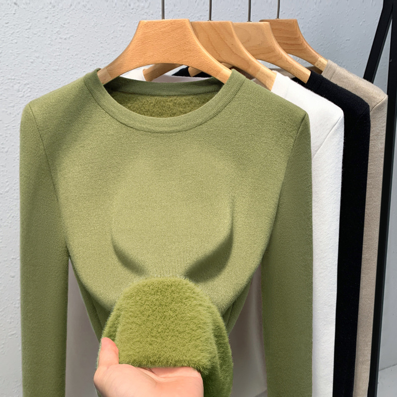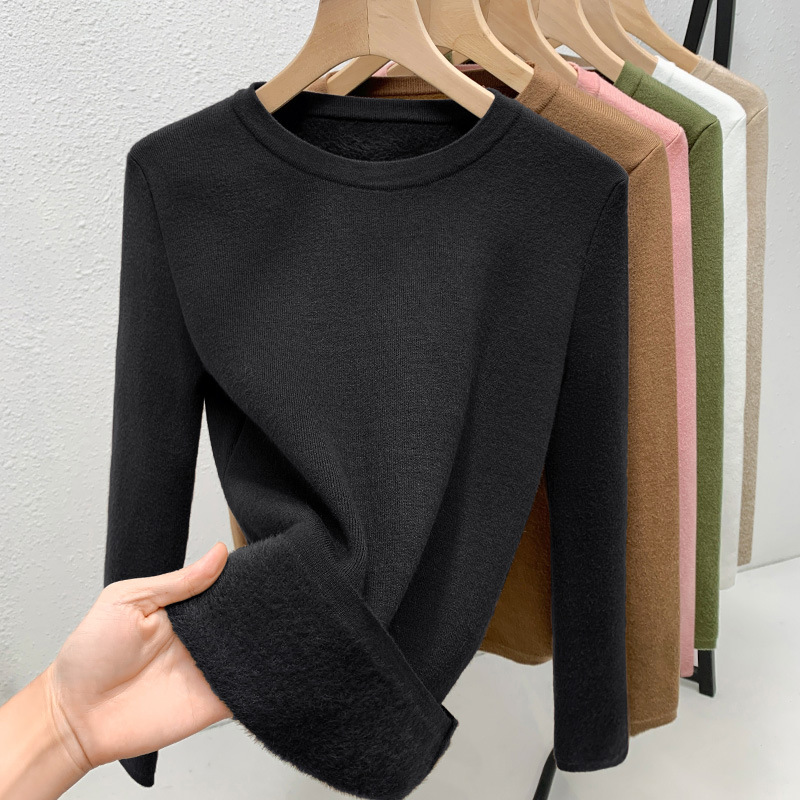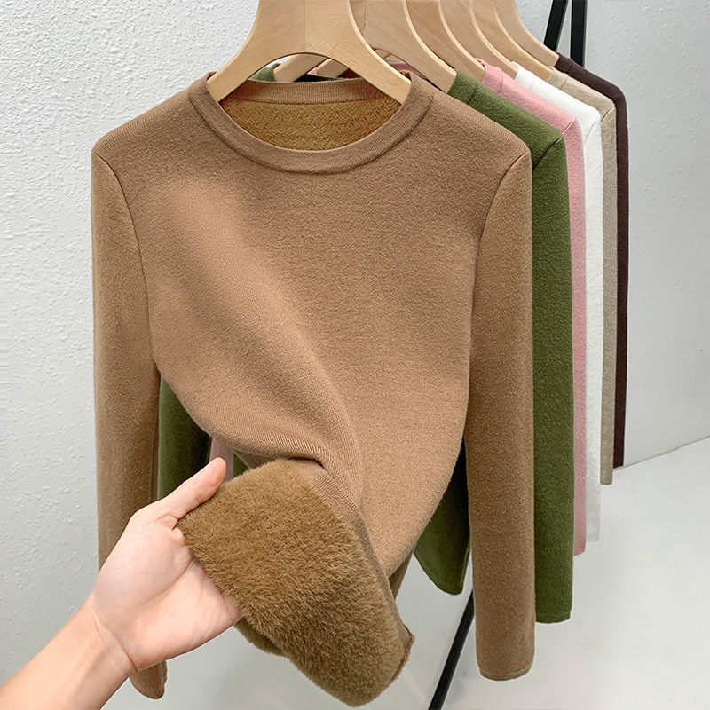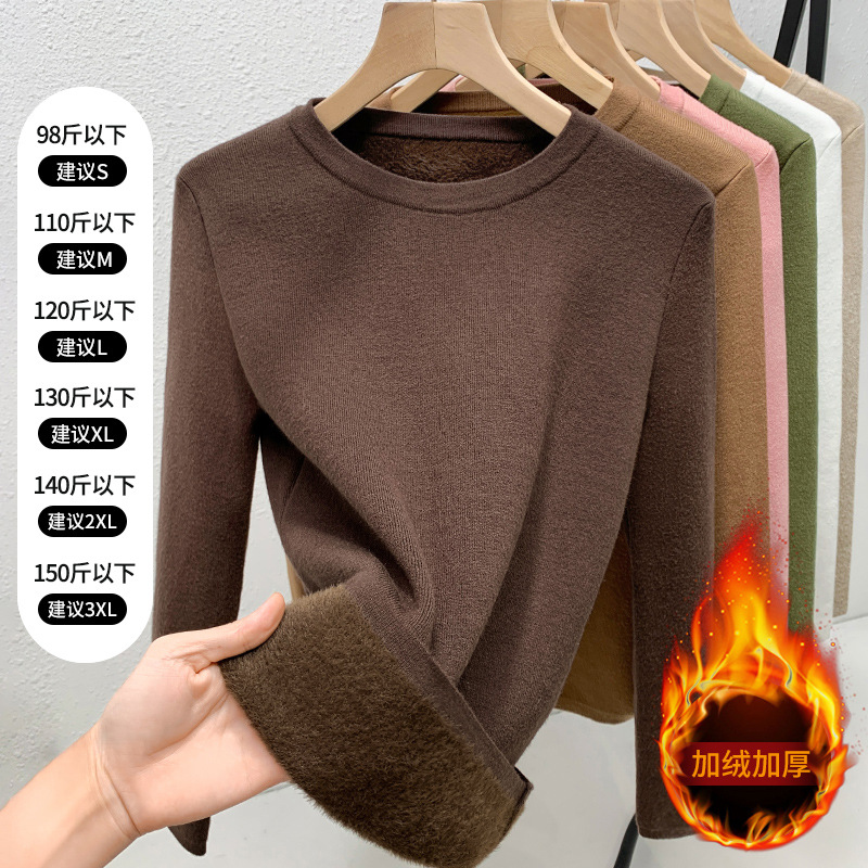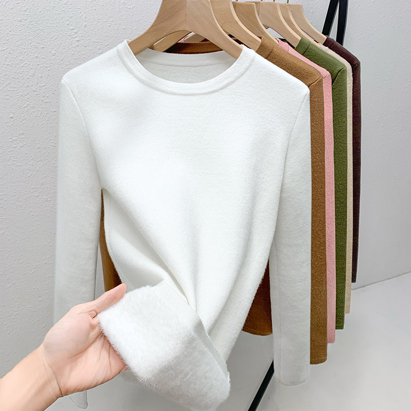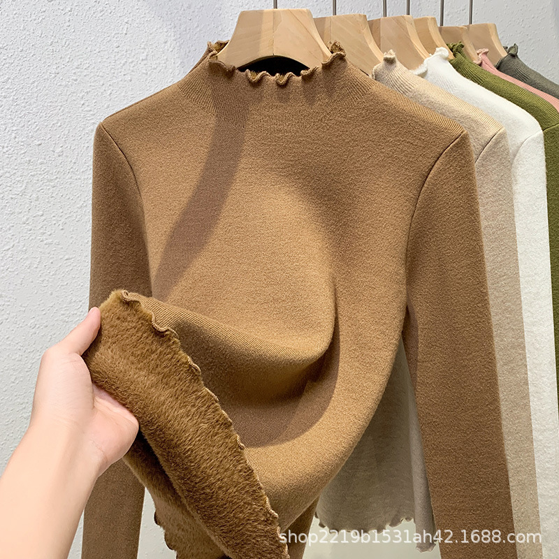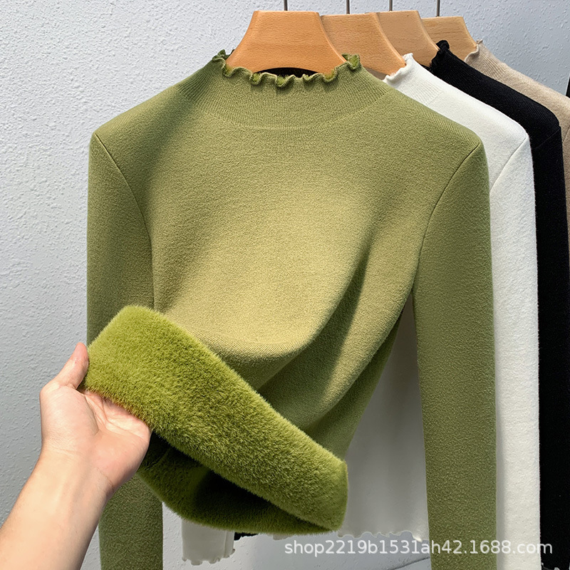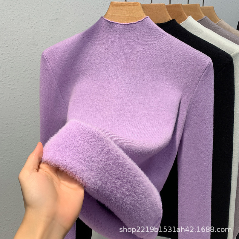 니트 베이스 셔츠 여성용 2025 신상 여성 풀오버 스웨터 보온 이너웨어 플러스 벨벳 두꺼운 올인원 벨벳 탑스토어 가기