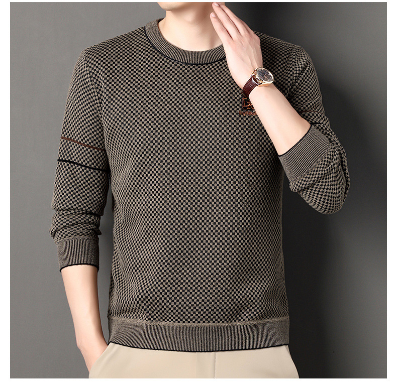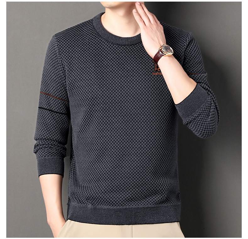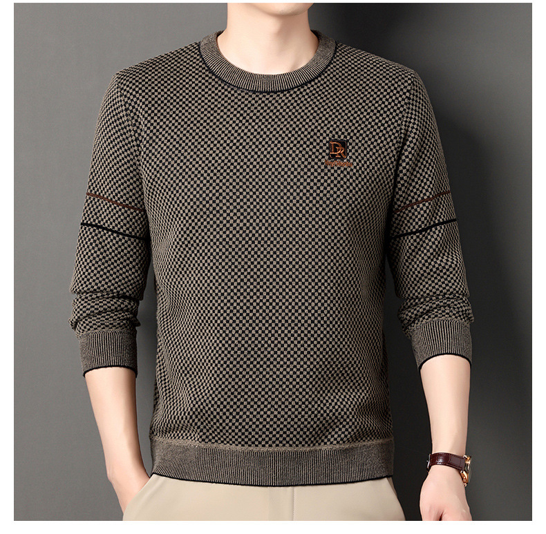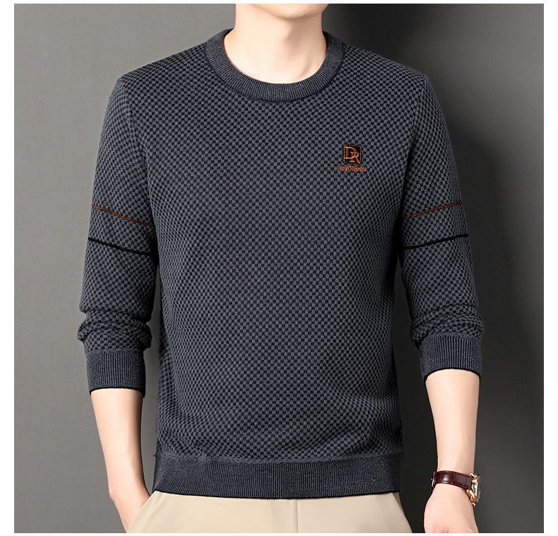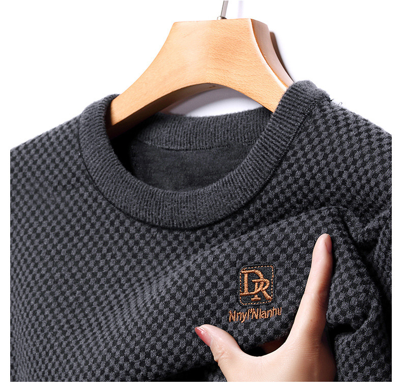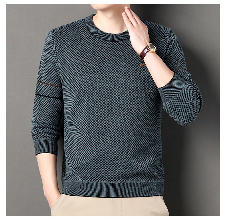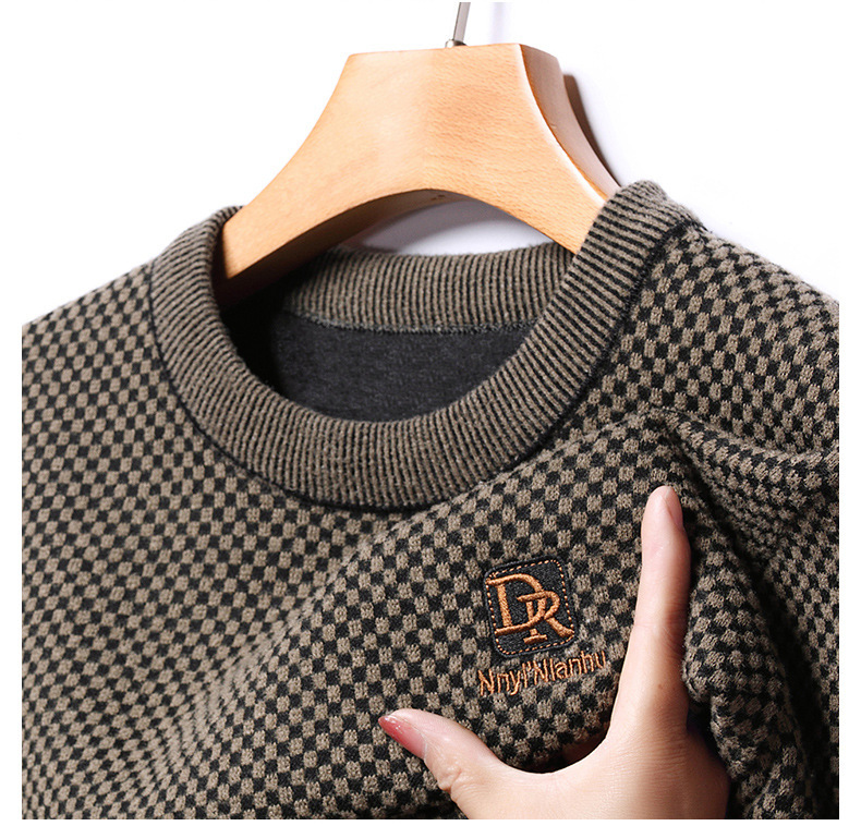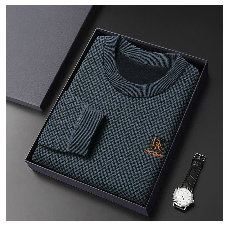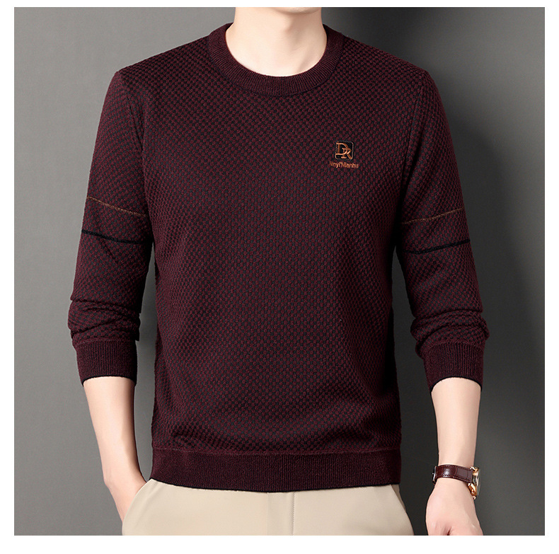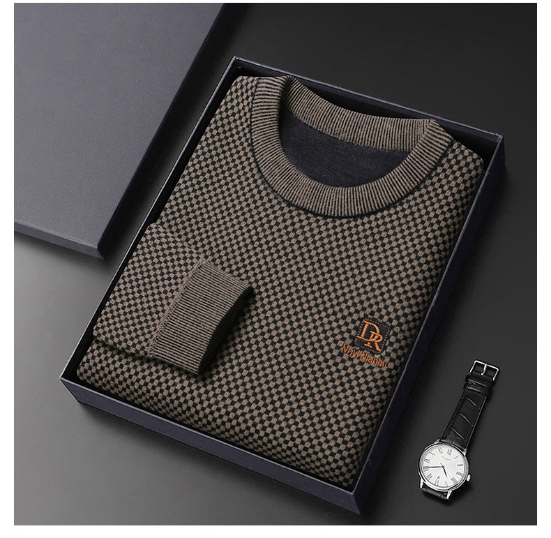 남성용 새 스웨터 기모 양각 된 가을과 겨울 긴 소매 둥근 목 니트 중년 및 노인 남성 자카드 컬러 매칭 올 매칭
