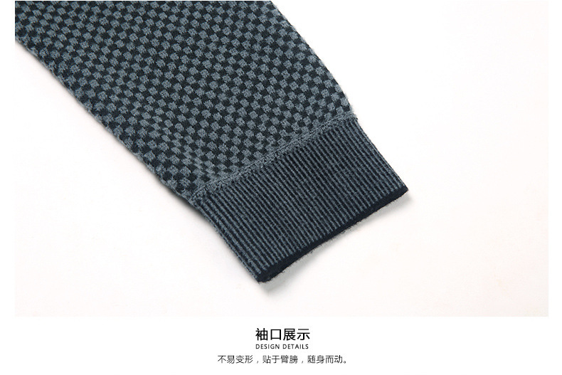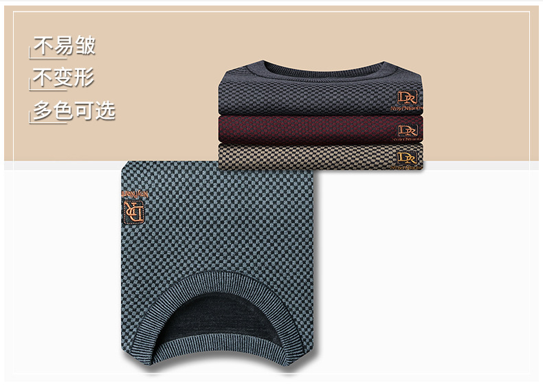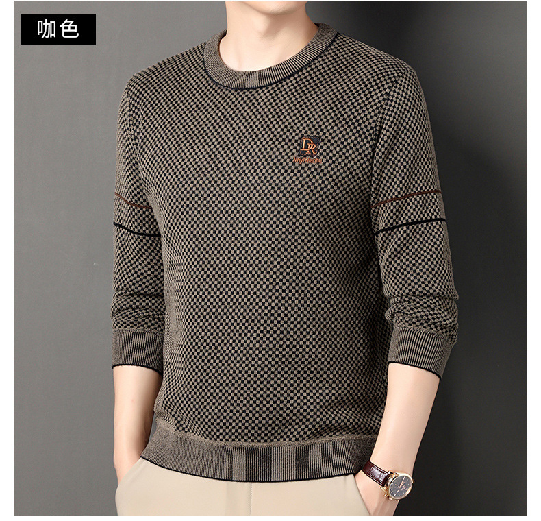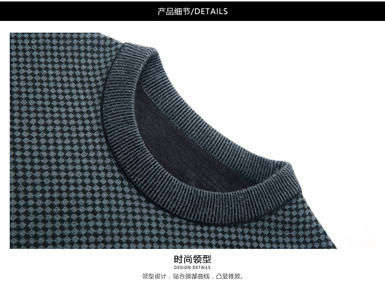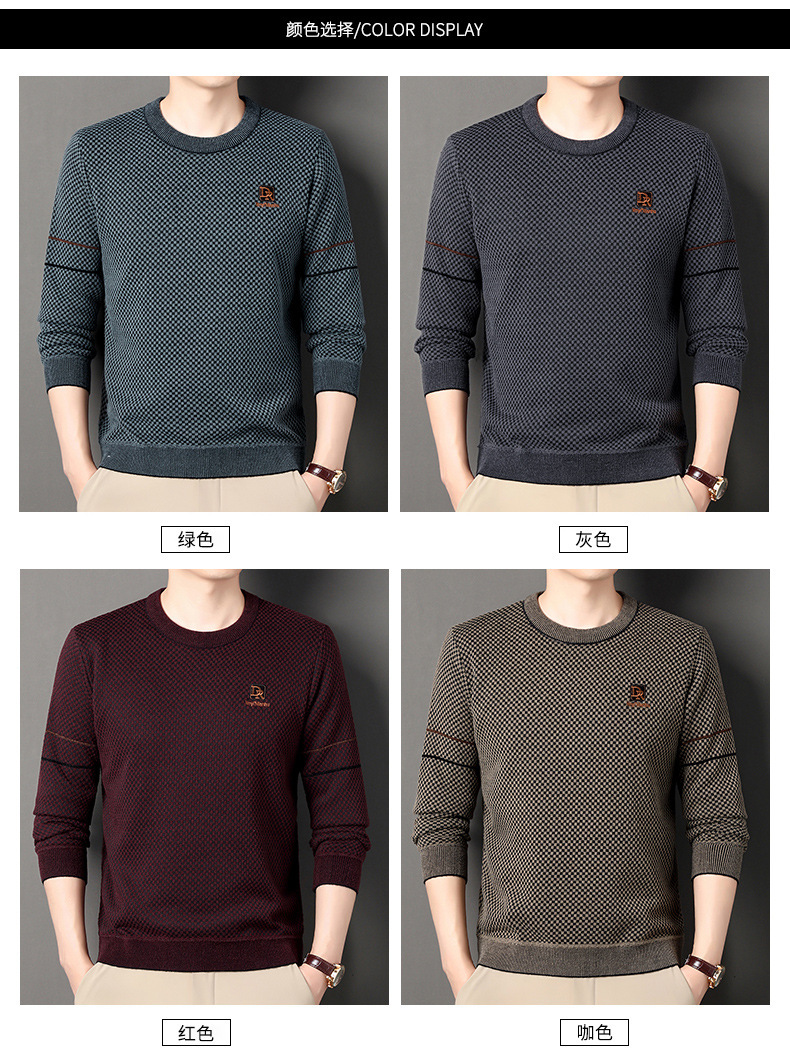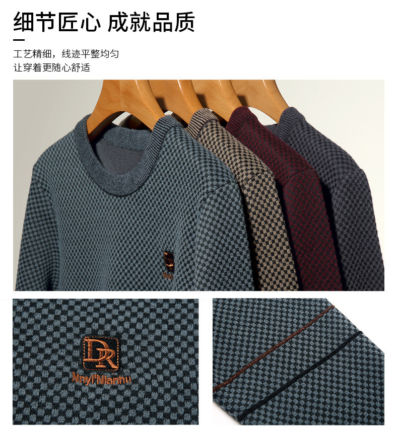 男装新款毛衣加绒加厚压花秋冬长袖圆领针织中老年男提花拼色百搭