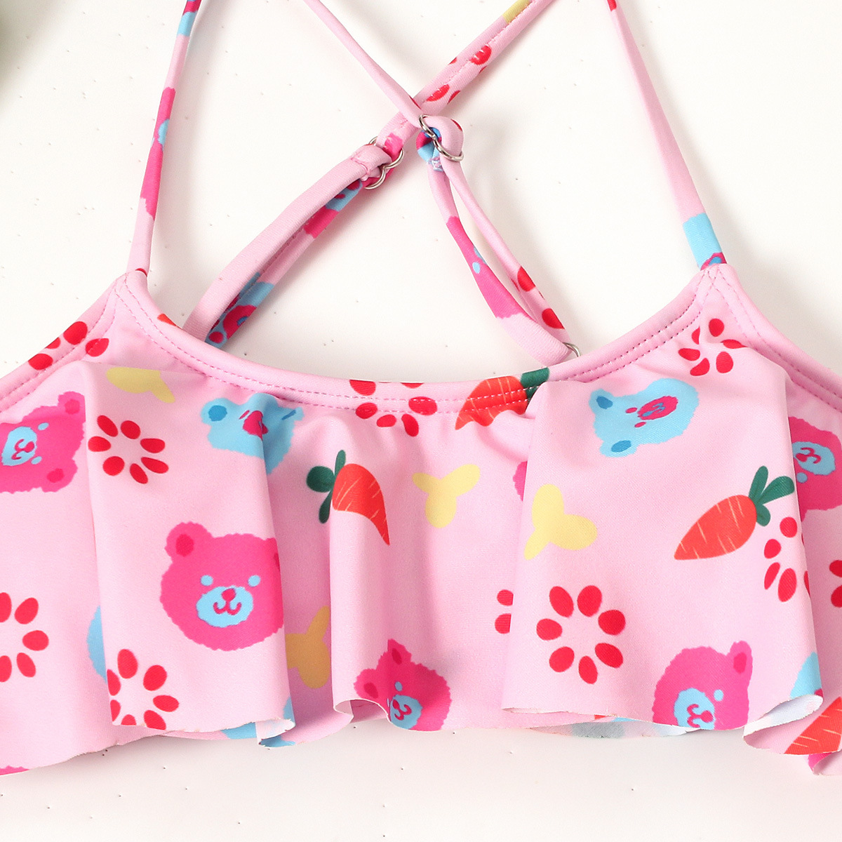 2024 새로운 어린이 수영복 패션 귀여운 인쇄 소녀의 비키니 미디어와 큰 어린이 130-140 유럽과 미국 수영복스토어 가기