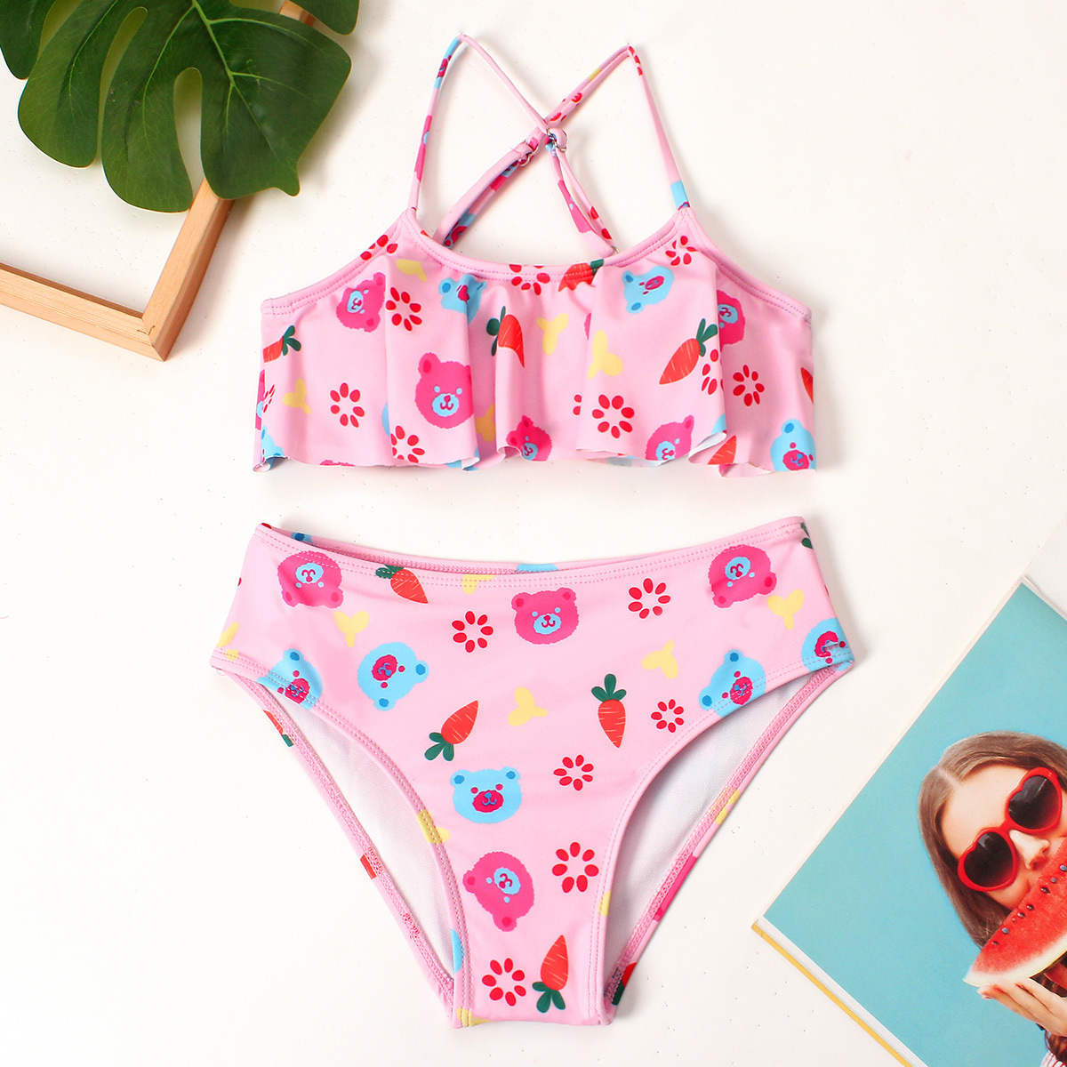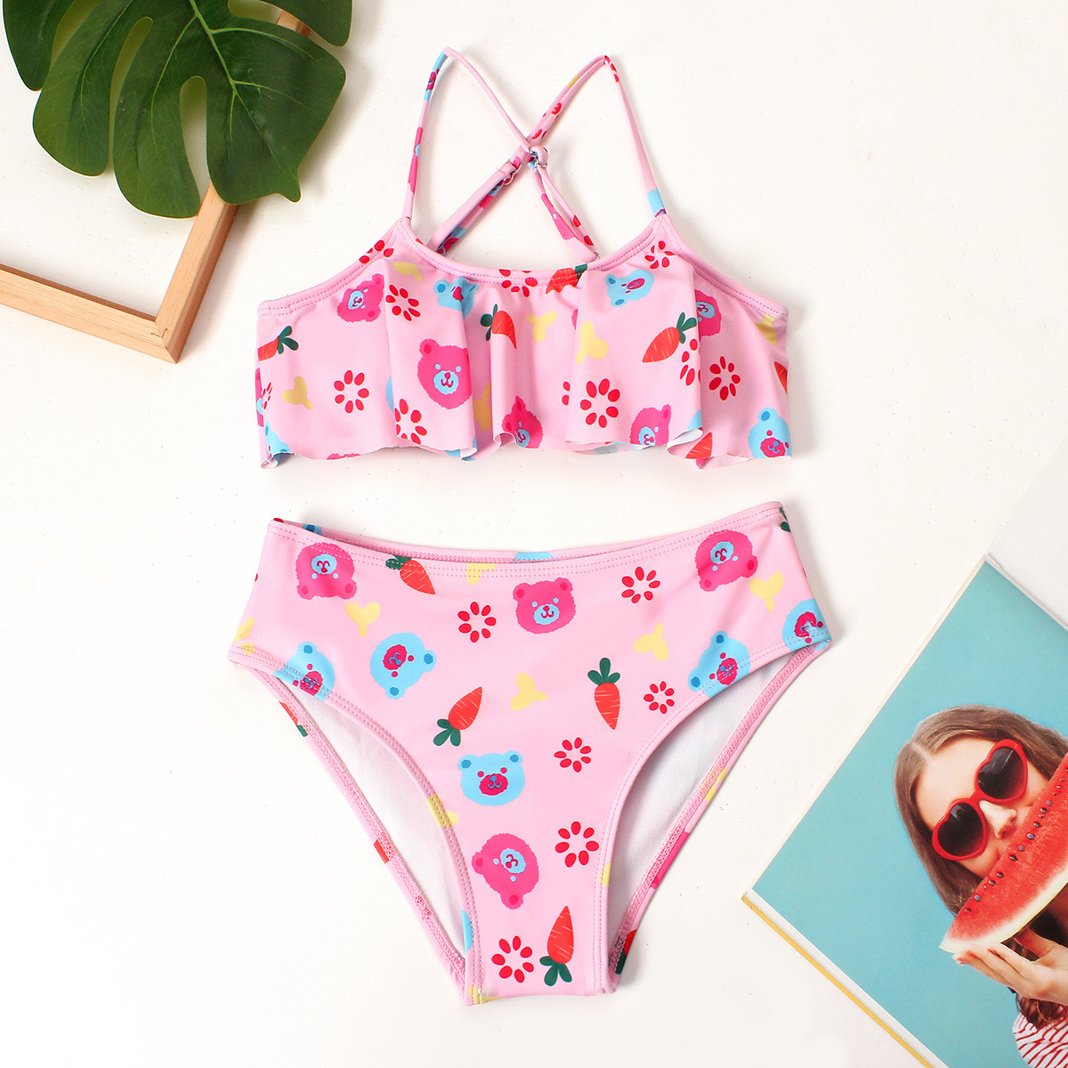 2024 새로운 어린이 수영복 패션 귀여운 인쇄 소녀의 비키니 미디어와 큰 어린이 130-140 유럽과 미국 수영복