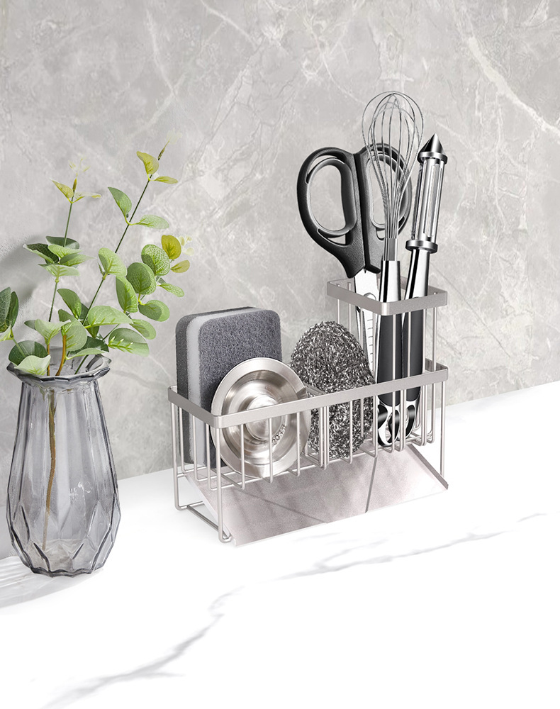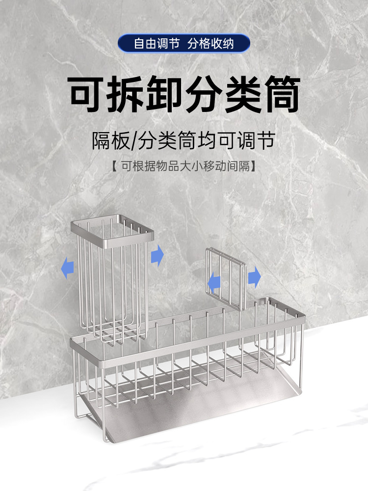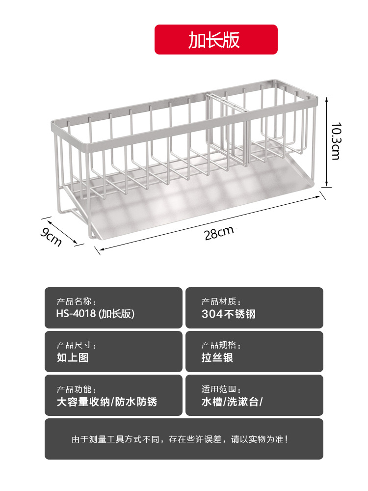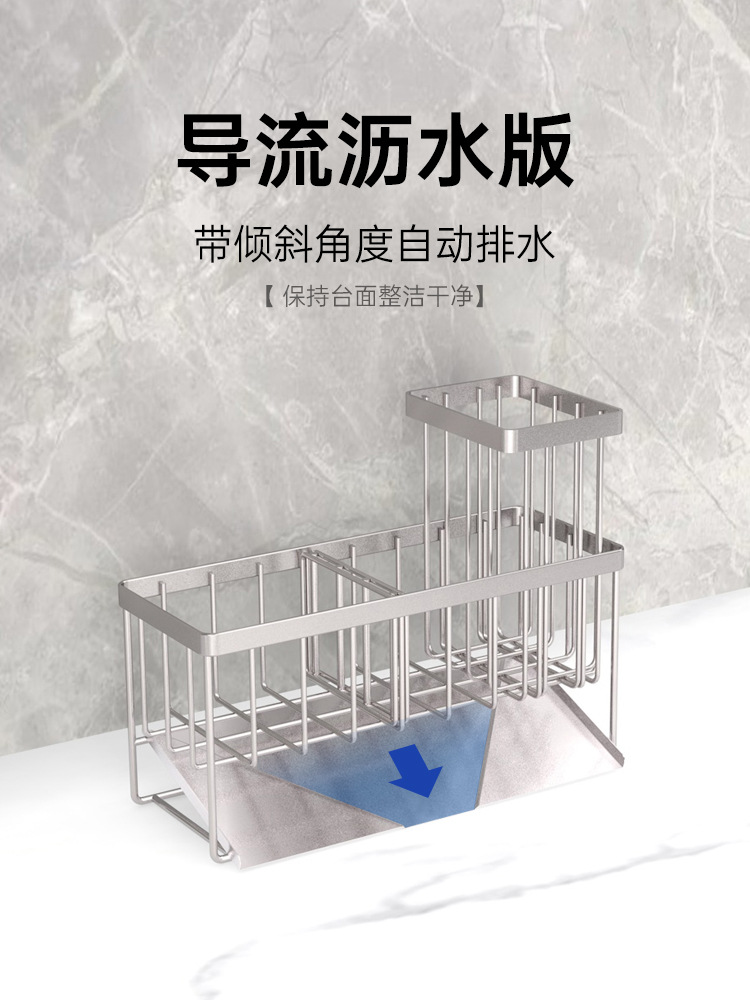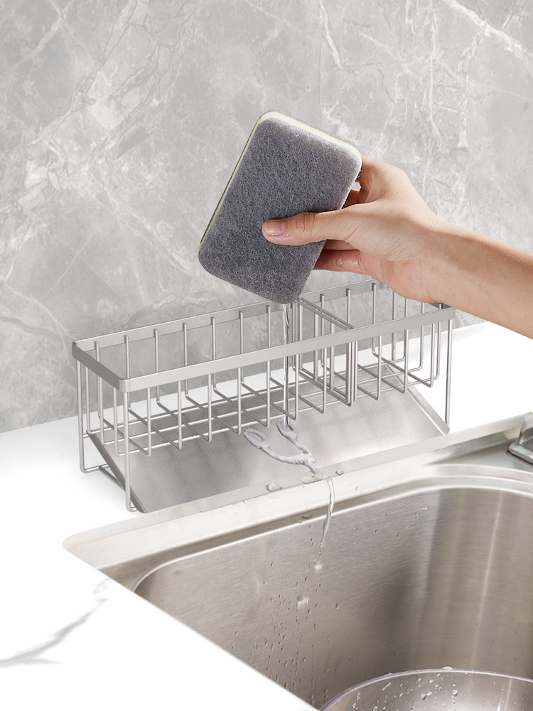 304 스테인레스 스틸 싱크 배수 랙 주방 스폰지 저장 랙 가정용 스틸 볼 긴 브러시 헝겊 보관 랙