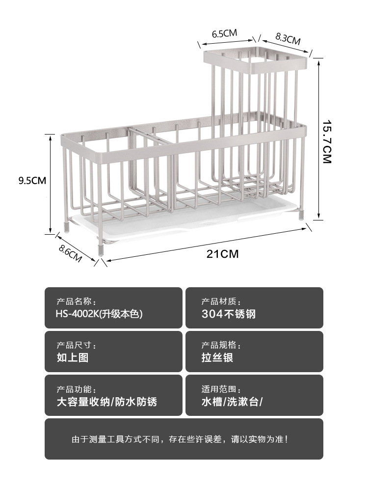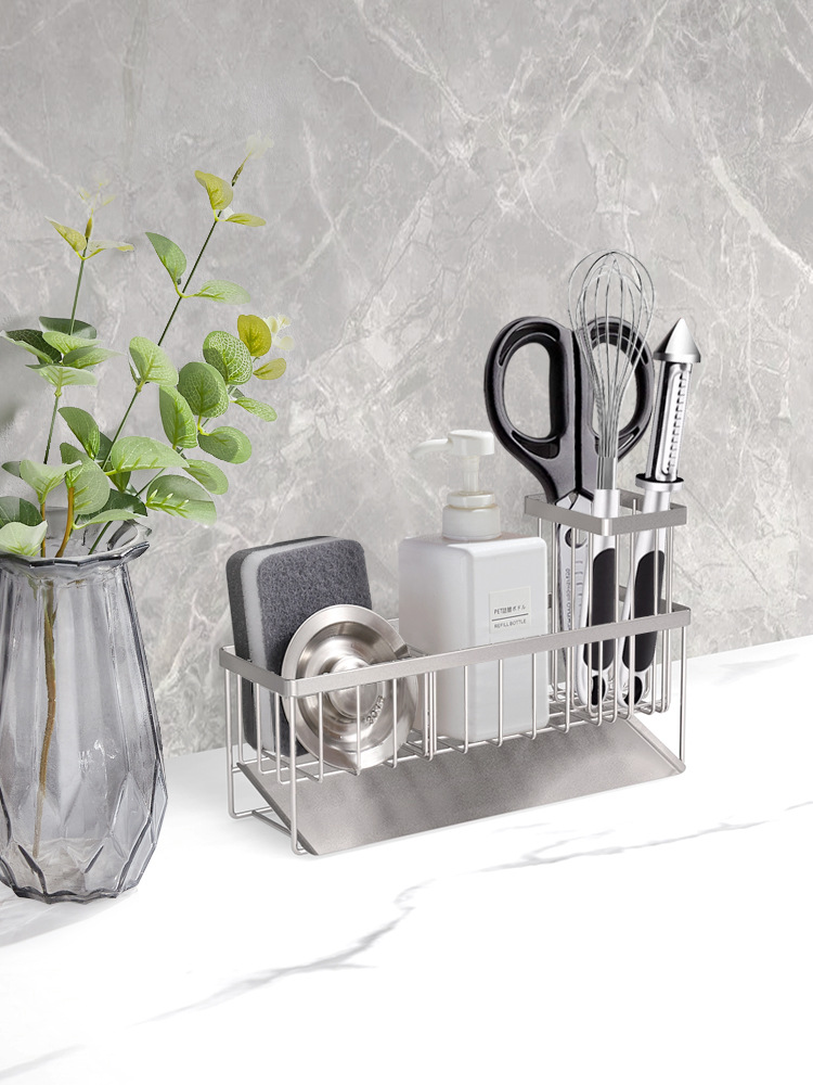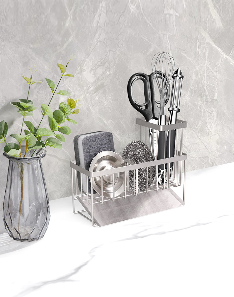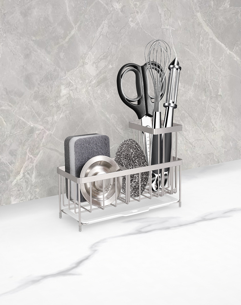 304 스테인레스 스틸 싱크 배수 랙 주방 스폰지 저장 랙 가정용 스틸 볼 긴 브러시 헝겊 보관 랙