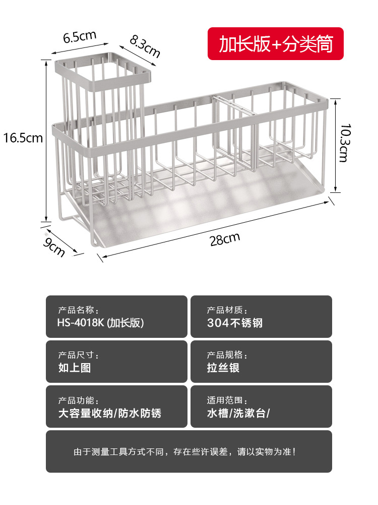 304 스테인레스 스틸 싱크 배수 랙 주방 스폰지 저장 랙 가정용 스틸 볼 긴 브러시 헝겊 보관 랙스토어 가기