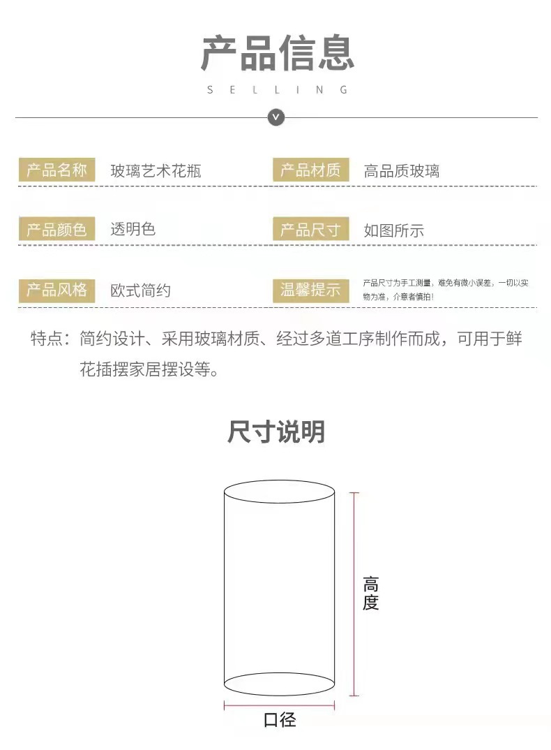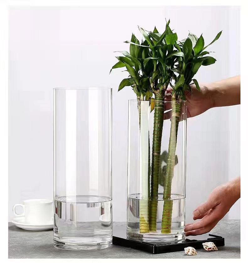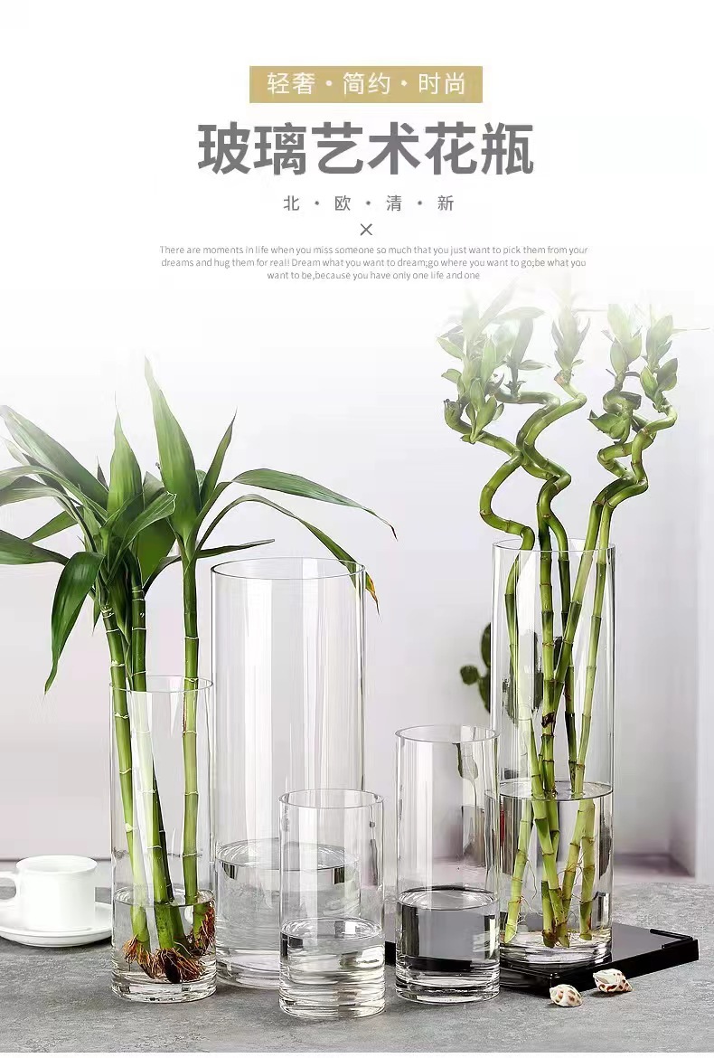 스트레이트 현대 간단한 투명 유리 고급 꽃병 홈 수경 장식 높은 모양의 장식 s 스타일스토어 가기