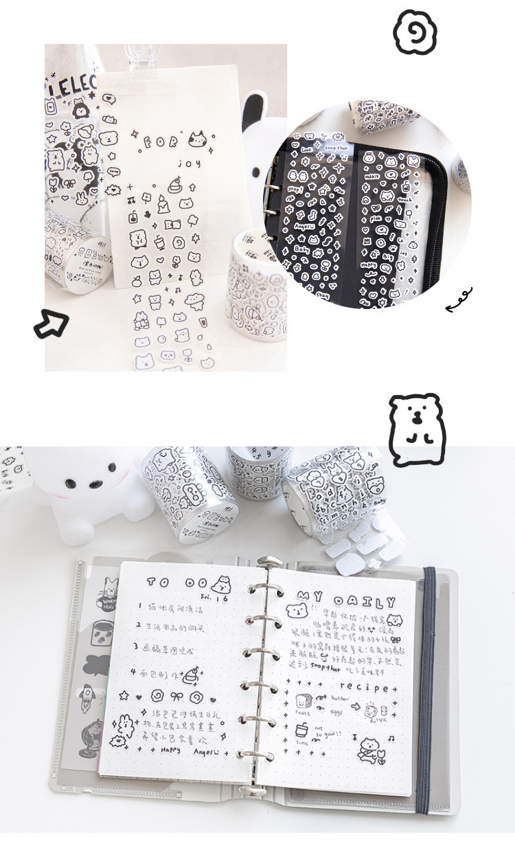 설탕시 폐기물 배출 테이프 라인 상점 시리즈 귀여운 만화 동물 구 카드 저널 DIY 장식 재료 스티커