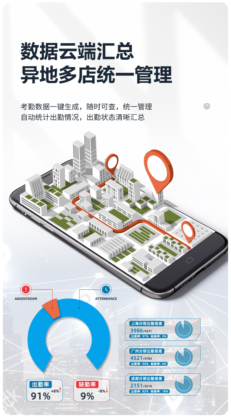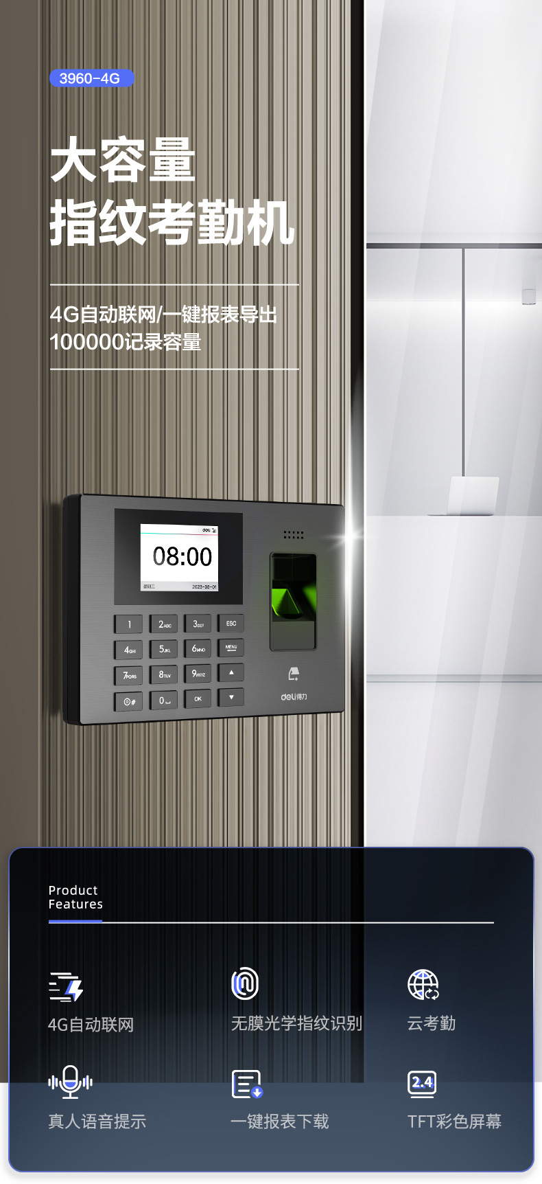 델리 3960-4G 클라우드 지문 출석 기계 휴대 전화 펀치 인 기계 직원 출석 장치는 4G 네트워크와 함께 제공됩니다.스토어 가기