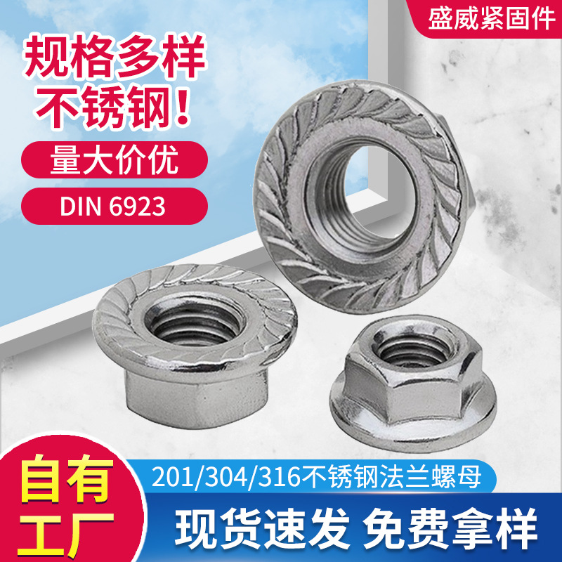 304 스테인레스 스틸 플랜지 너트 육각 플랜지 너트 DIN6923 꽃 치아 미끄럼 방지 플랜지 너트 스팟 도매스토어 가기