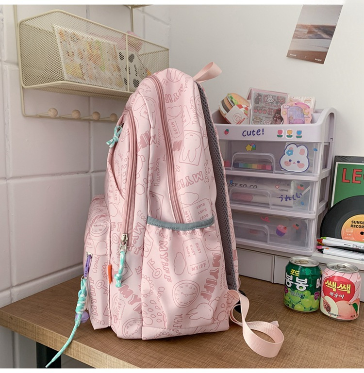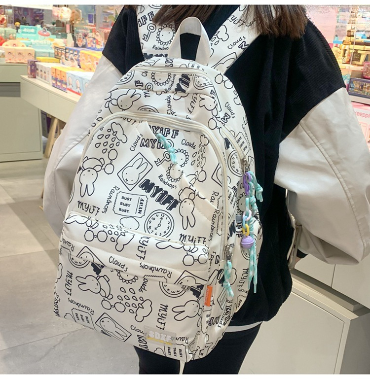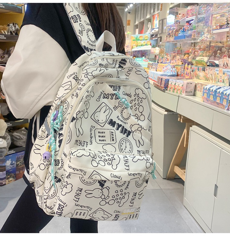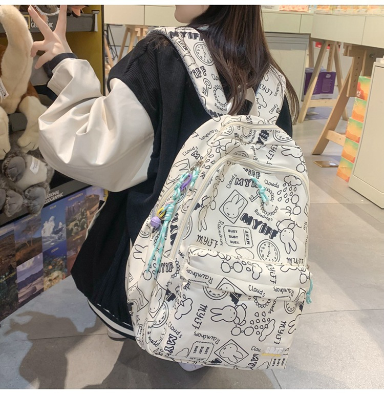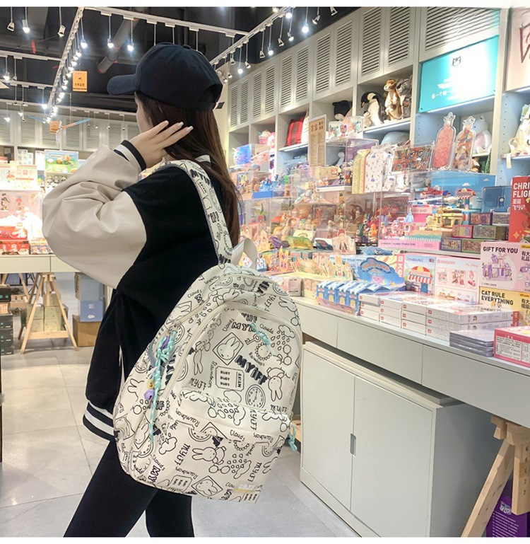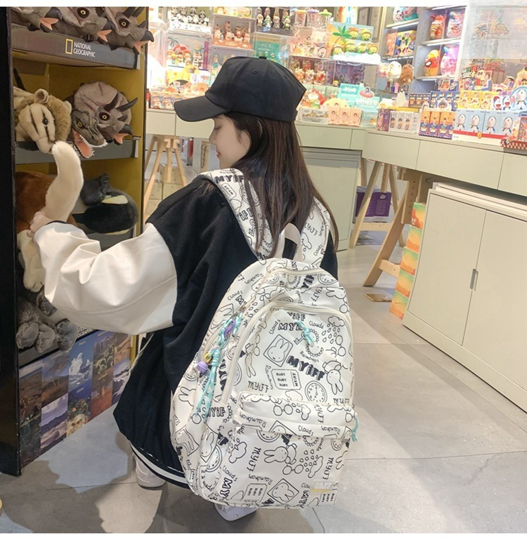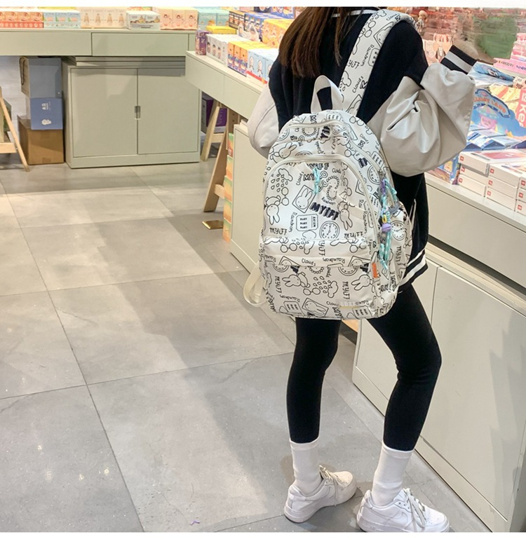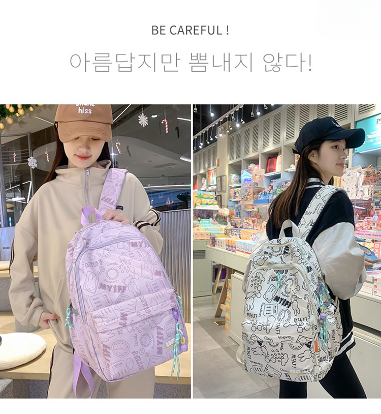 Schoolbag 여성 2023 새로운 초등학교 학생 귀여운 낙서 대용량 배낭 캐주얼 캔버스 방수 배낭 추천스토어 가기