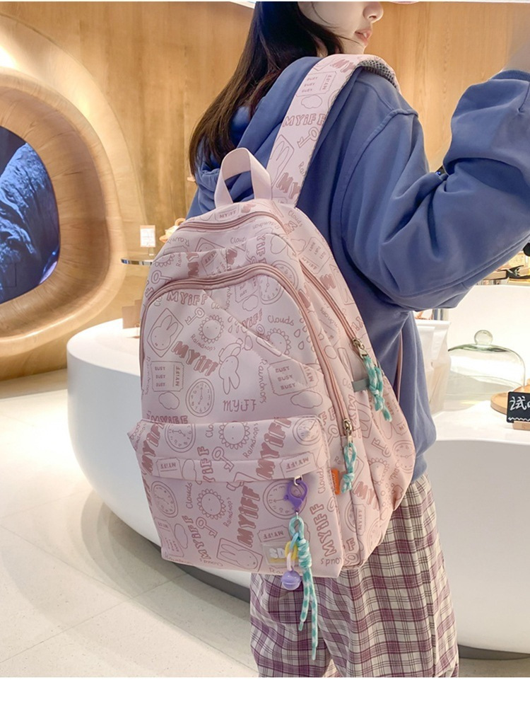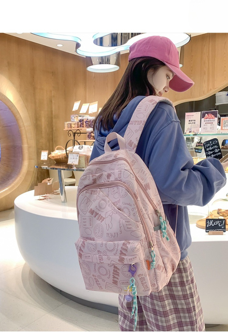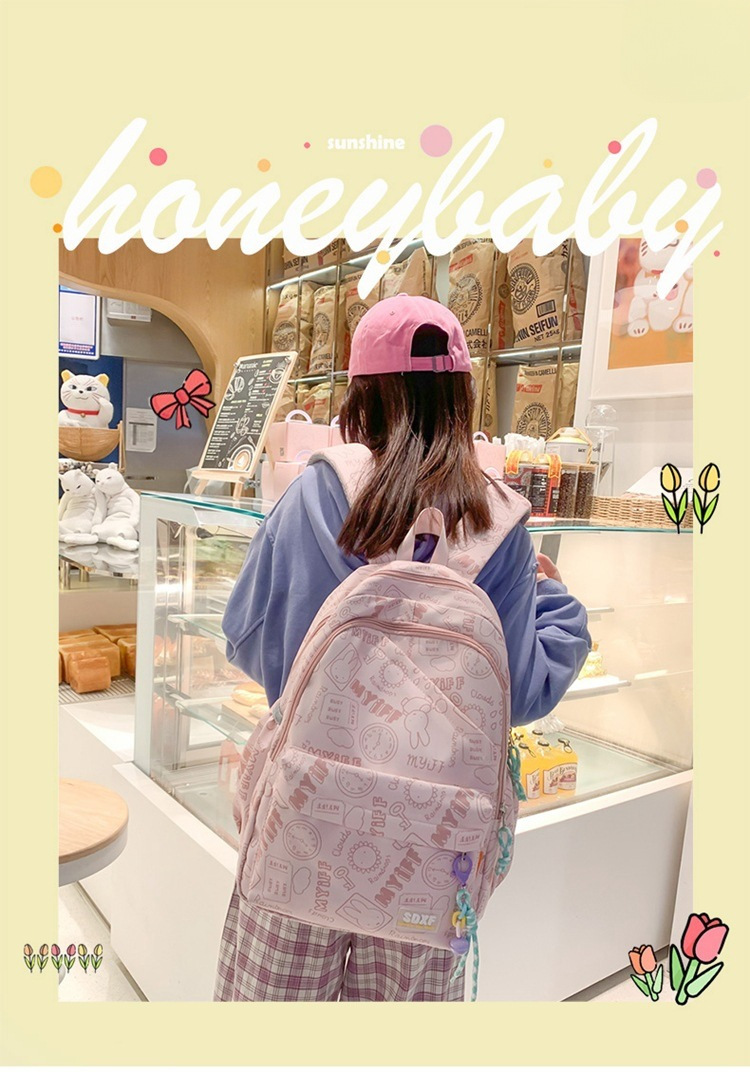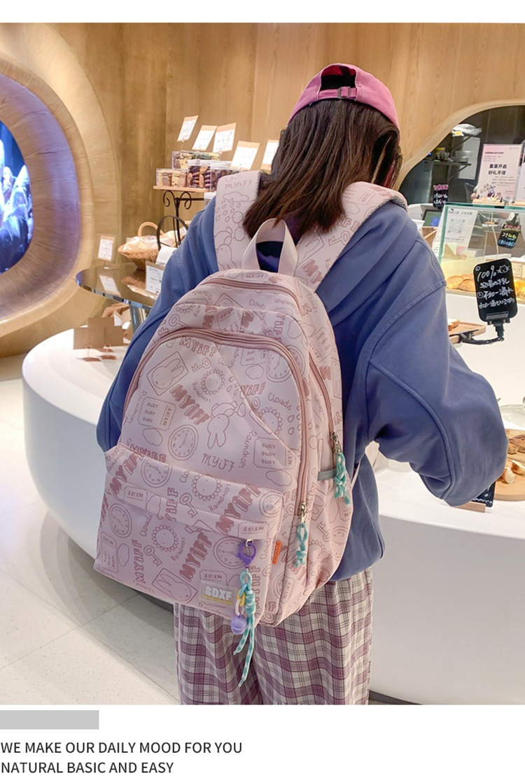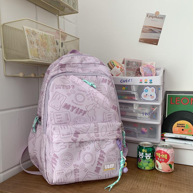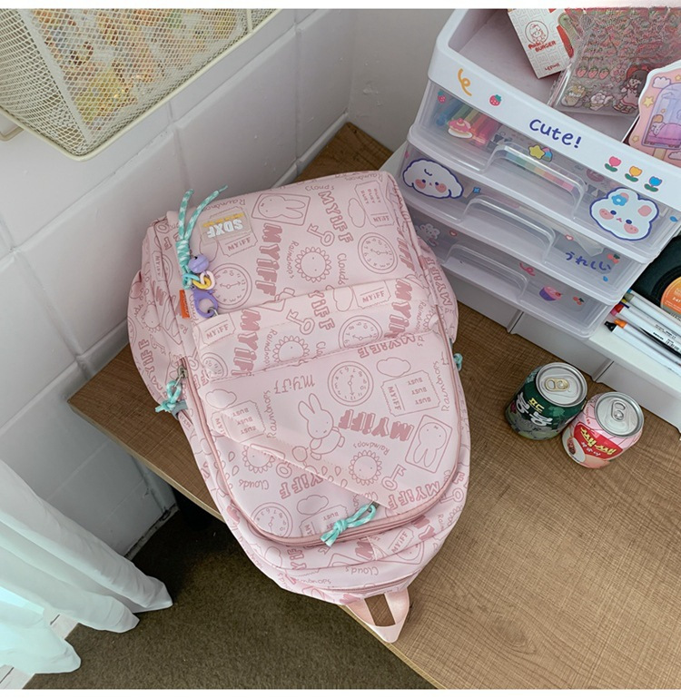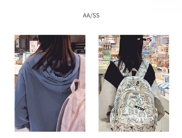 Schoolbag 여성 2023 새로운 초등학교 학생 귀여운 낙서 대용량 배낭 캐주얼 캔버스 방수 배낭 추천스토어 가기