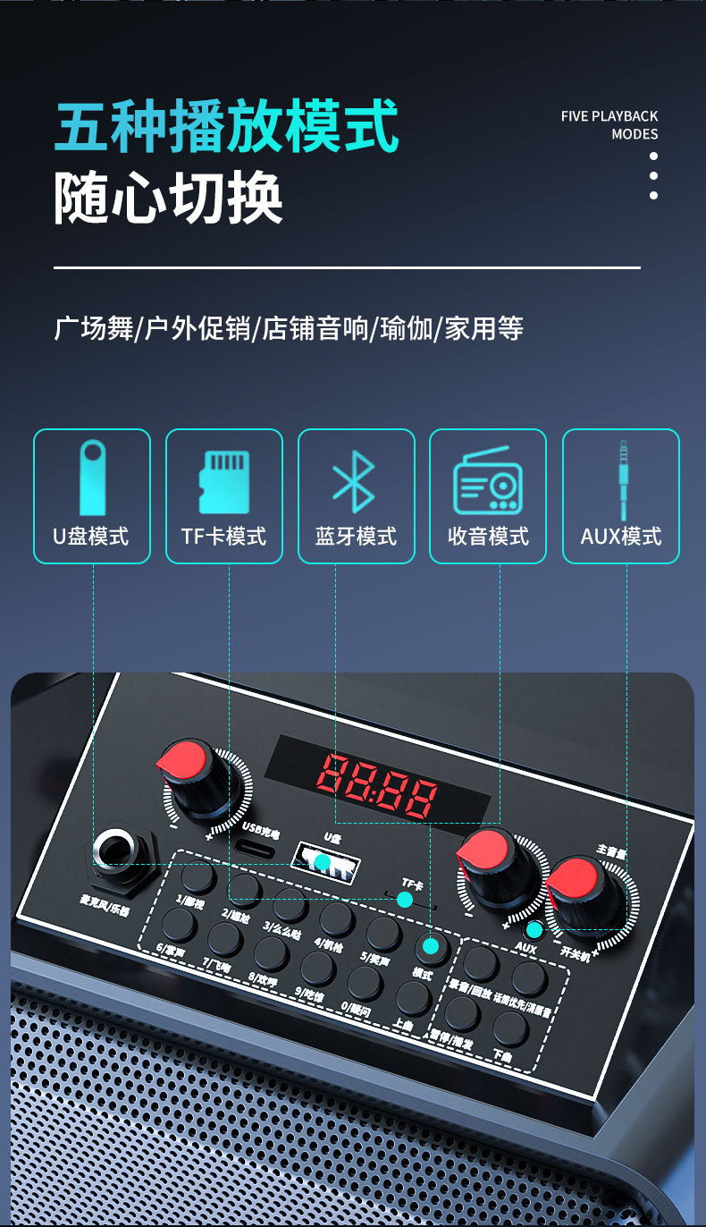 스퀘어 댄스 K-노래 오디오 휴대용 블루투스 스피커 큰 사운드 스피커 무선 마이크 야외 방송 스톨스토어 가기