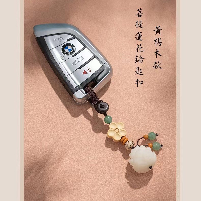 화이트 제이드 보디 루트 로터스 자동차 키 체인 회양목 작은 꽃 휴대 전화 체인 여성 펜던트 U 디스크 창조적 인 작은 장식품스토어 가기