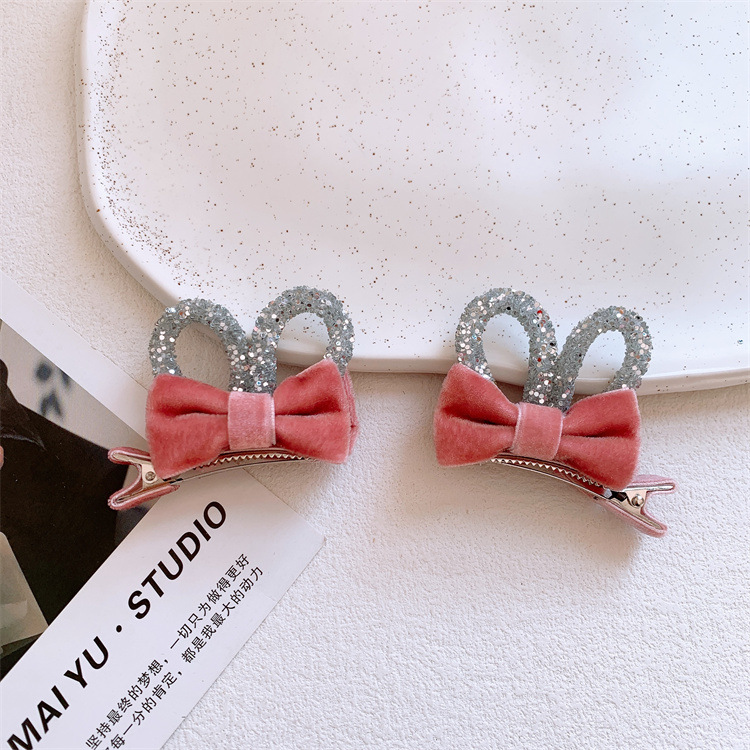 달콤한 활 머리핀 소녀 토끼 귀 머리핀 버건디 새해 공주 클립 한국식 어린이 헤어 액세서리