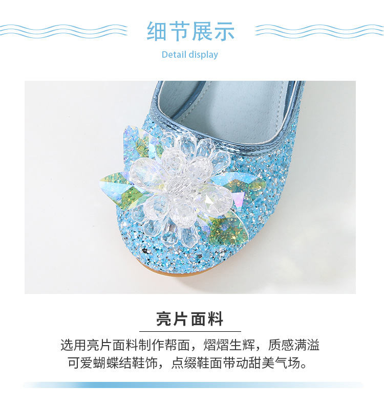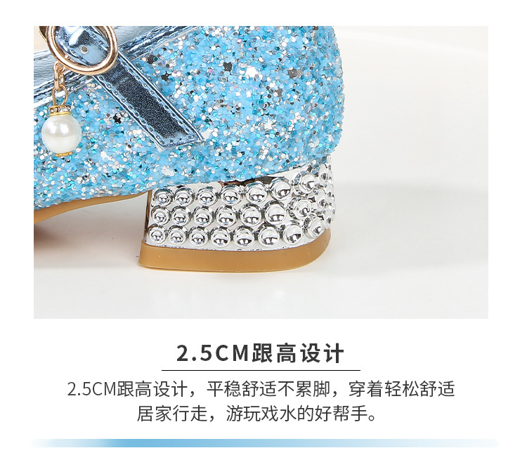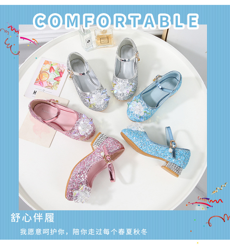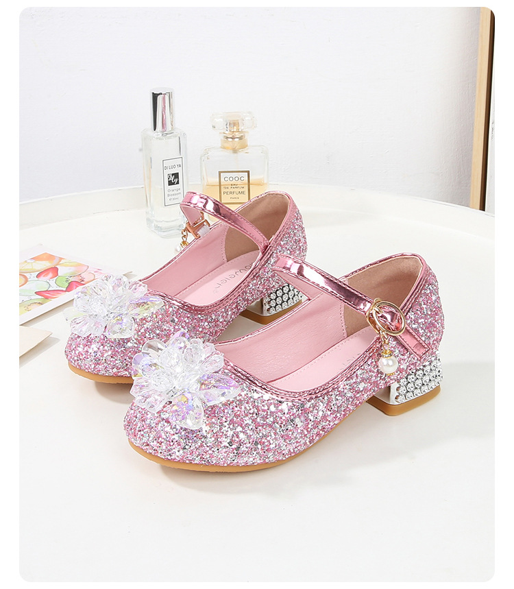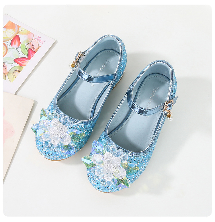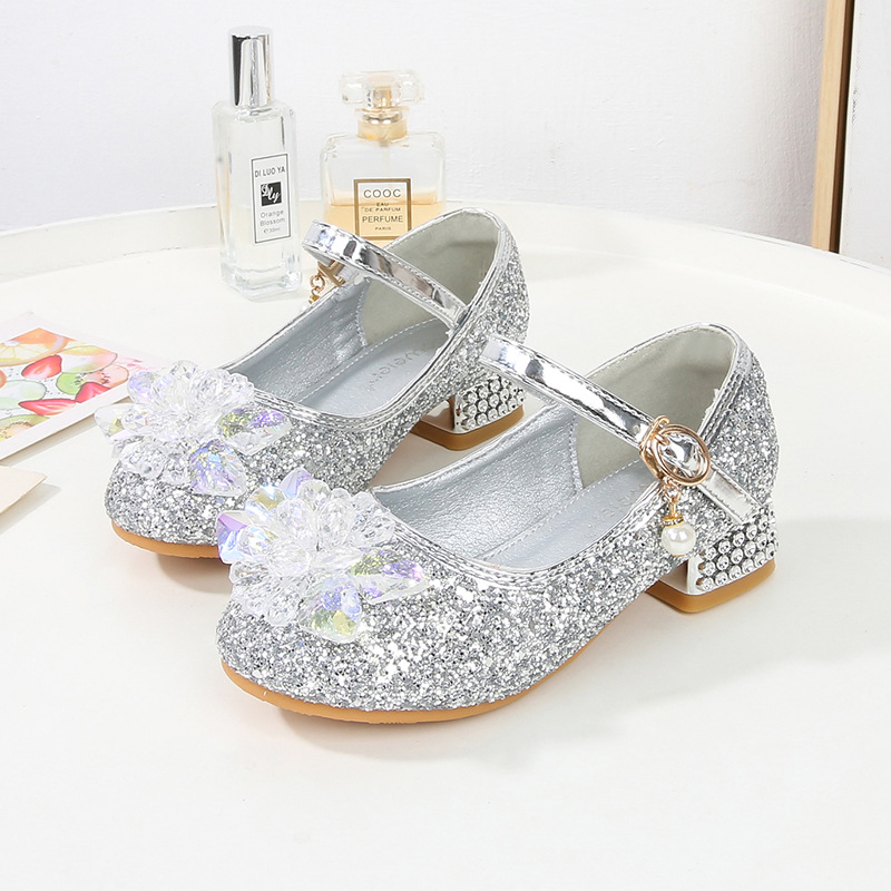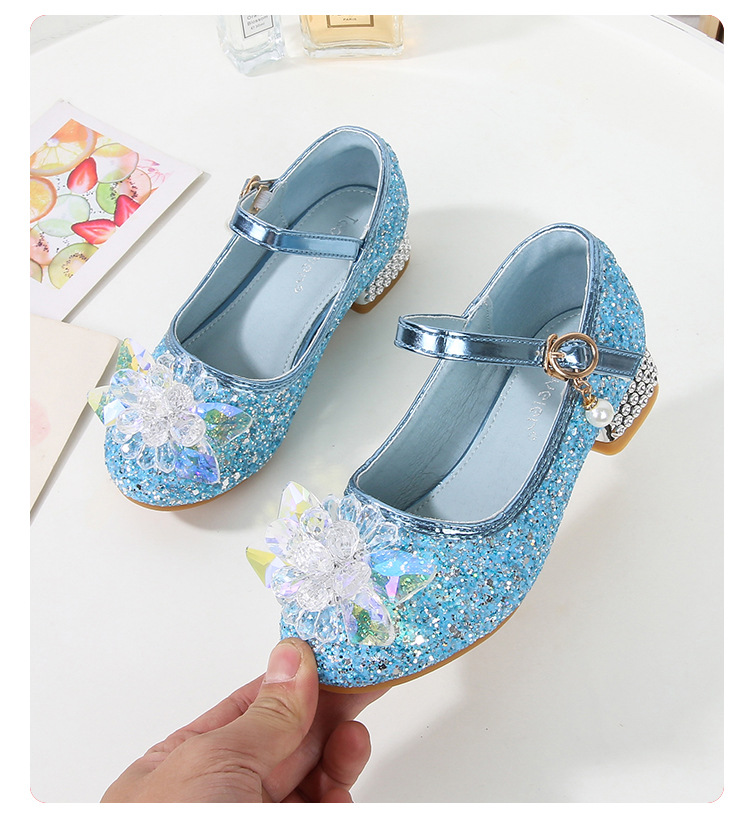 어린이 하이힐 크리스탈 신발 소녀 싱글 레이어 신발 어린 소녀 엘사 공주 신발 아기 어린이 신발 스팽글 반짝이는 가죽 신발