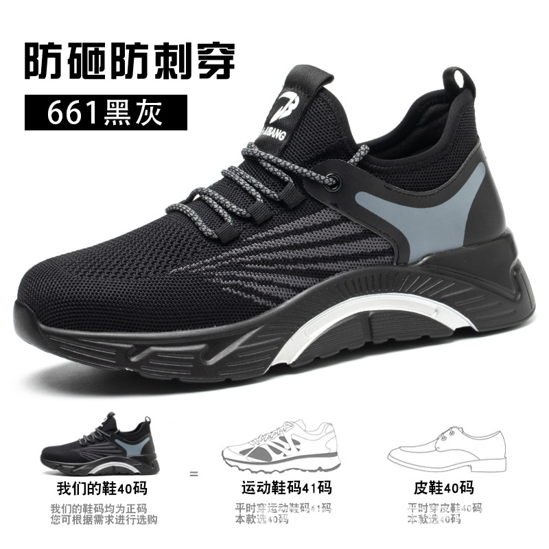防滑透气工装鞋 四季飞织轻便劳保鞋跨境 钢包头防砸防穿刺防护鞋