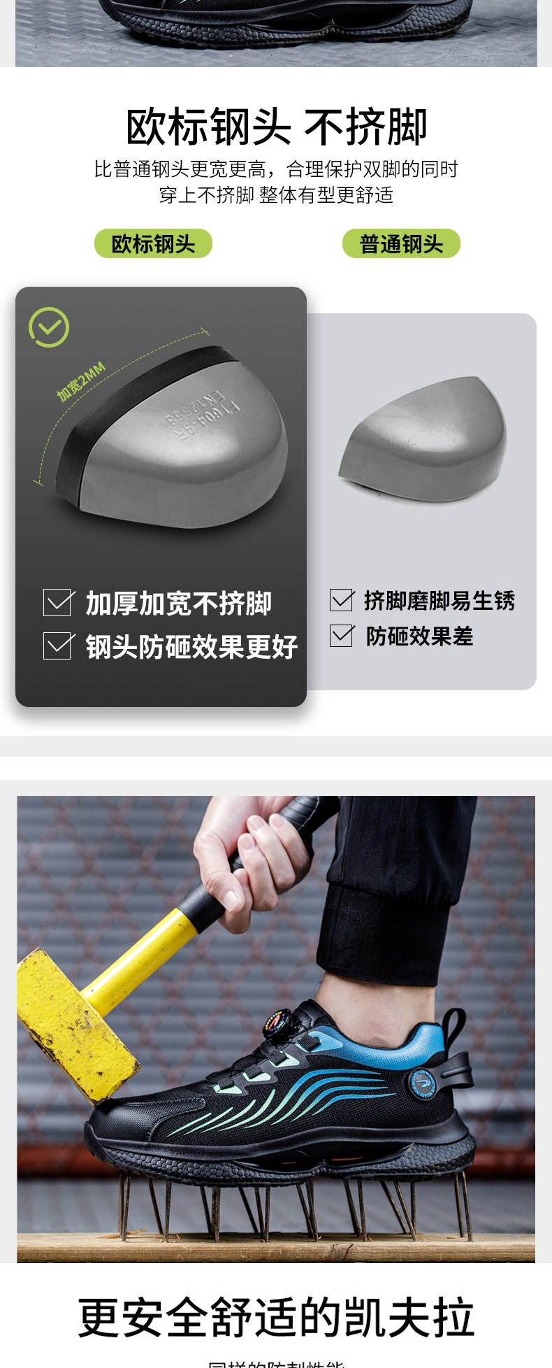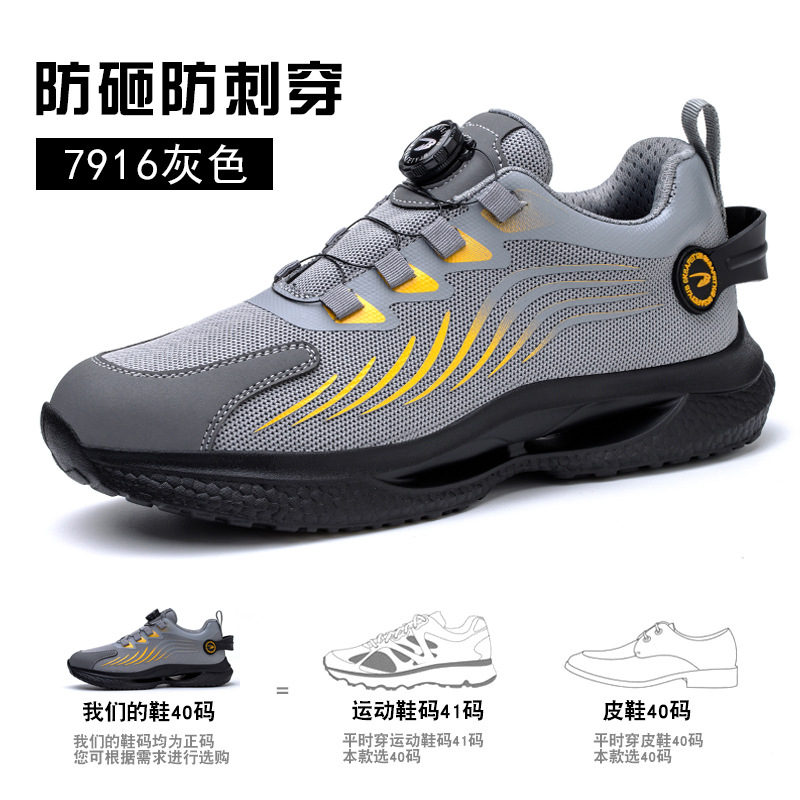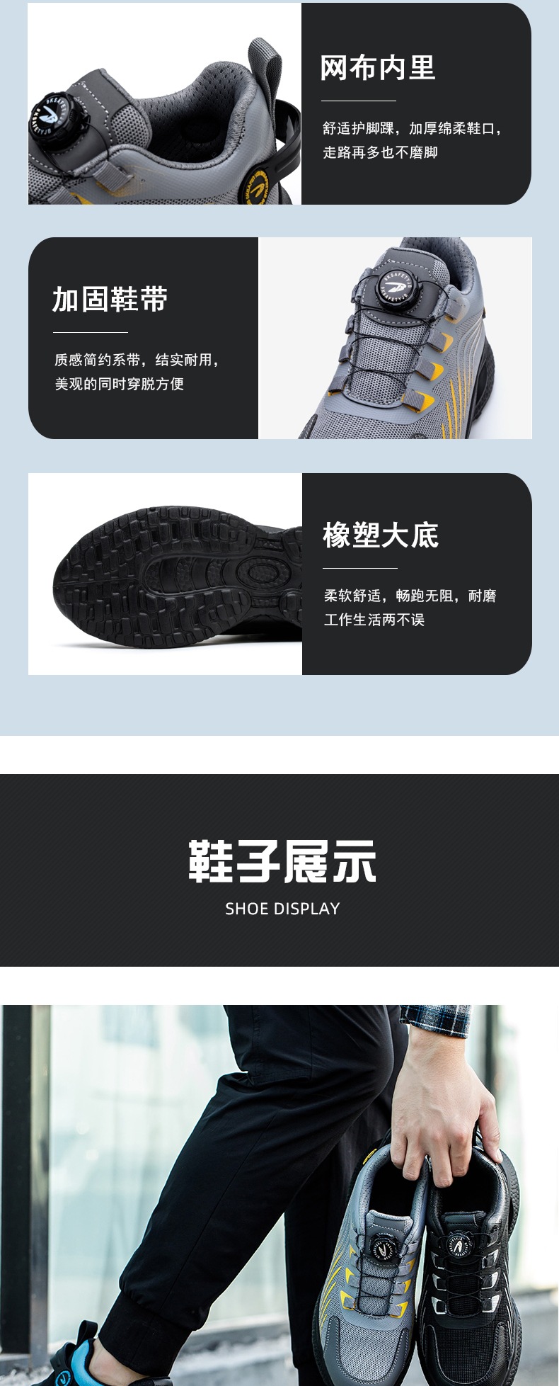 四季跨境劳保鞋 懒人旋转纽扣钢丝鞋带劳保鞋 防砸防刺穿钢头鞋
