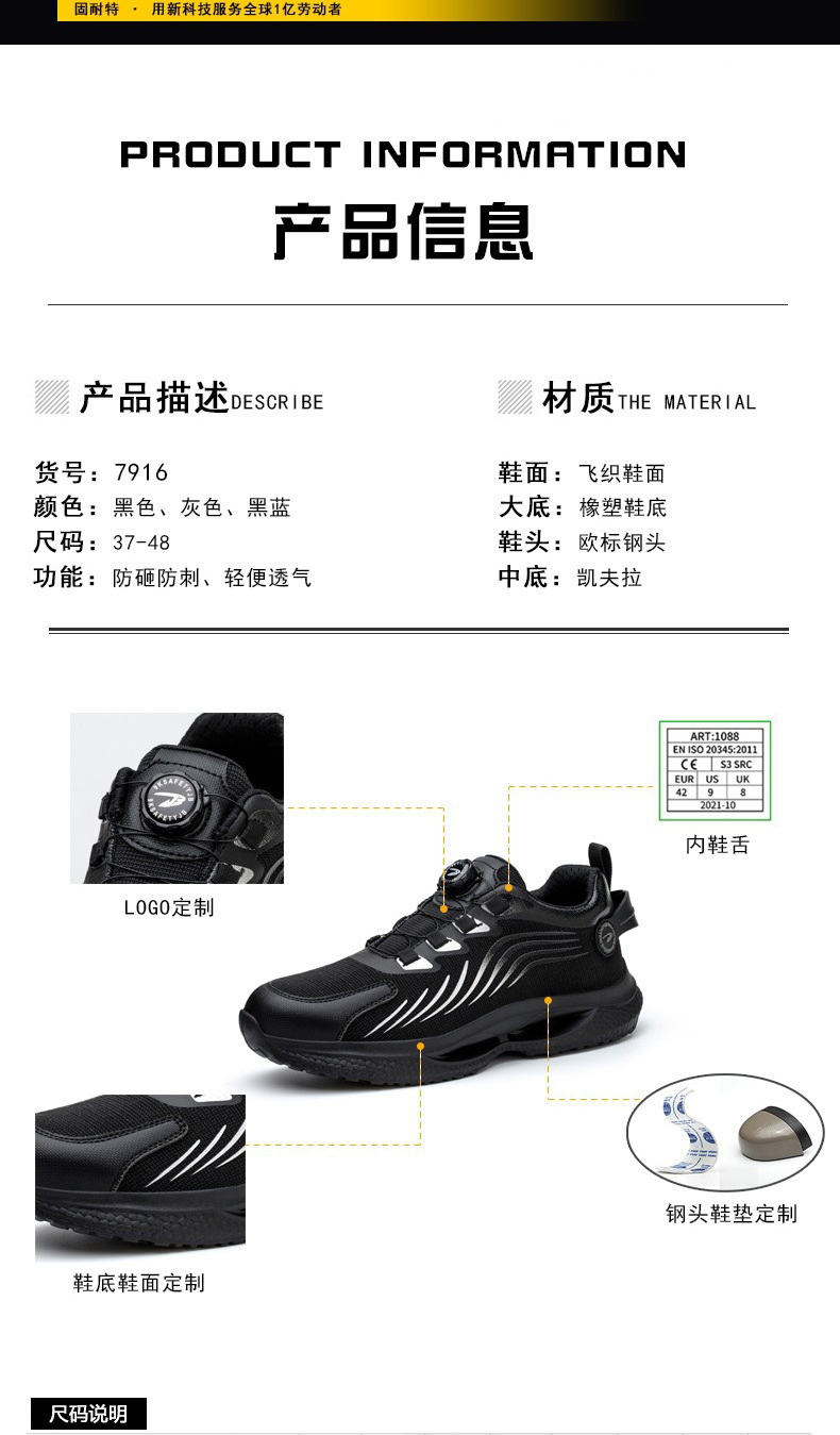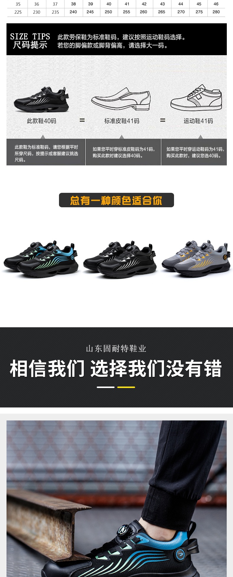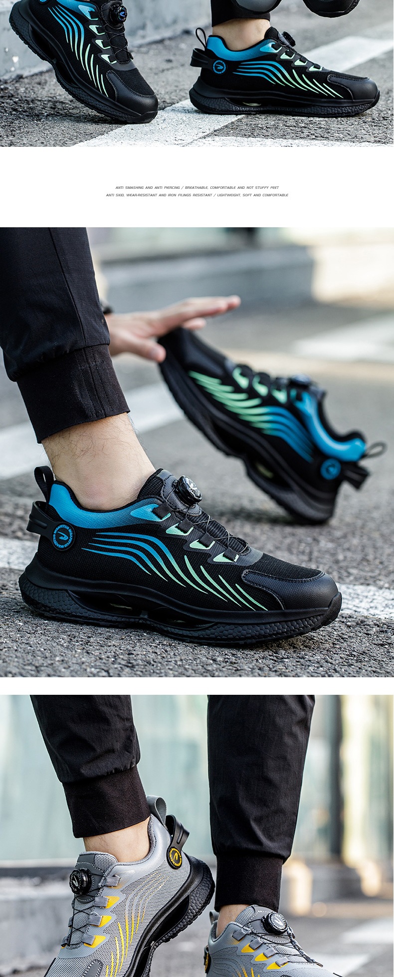 四季跨境劳保鞋 懒人旋转纽扣钢丝鞋带劳保鞋 防砸防刺穿钢头鞋
