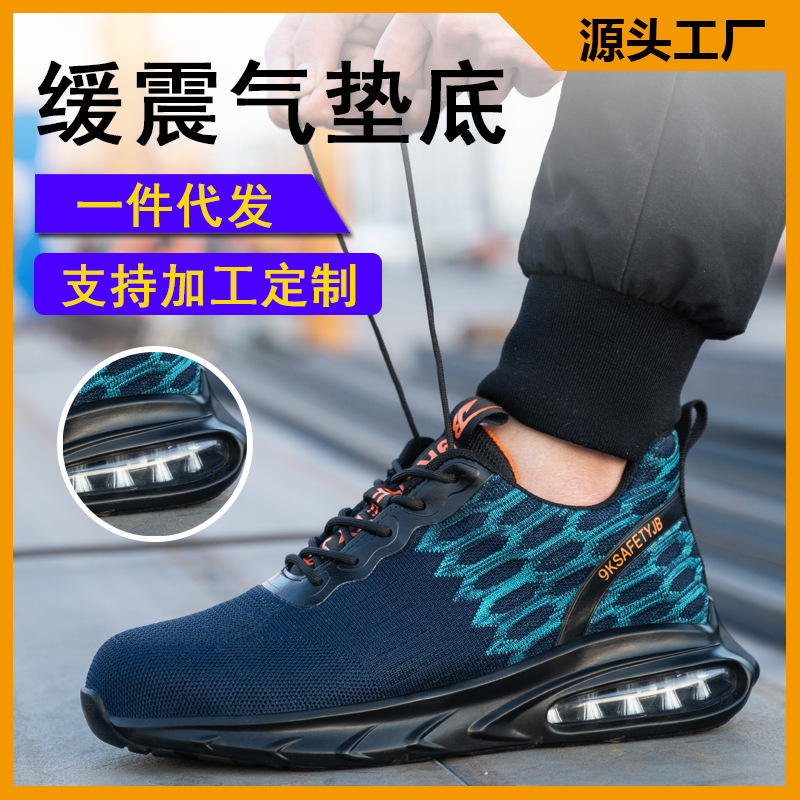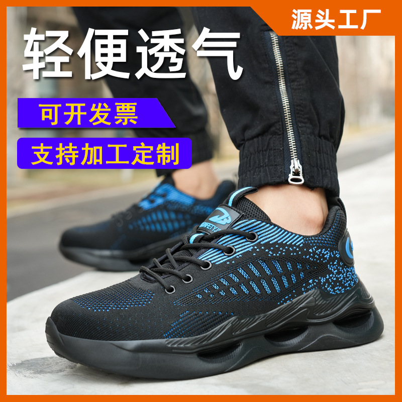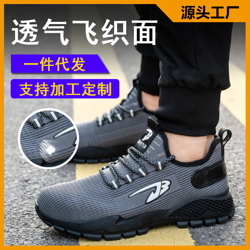 夏季飞织劳保鞋钢头轻盈轻便防砸防刺穿安全吸汗透气劳保鞋鞋跨境