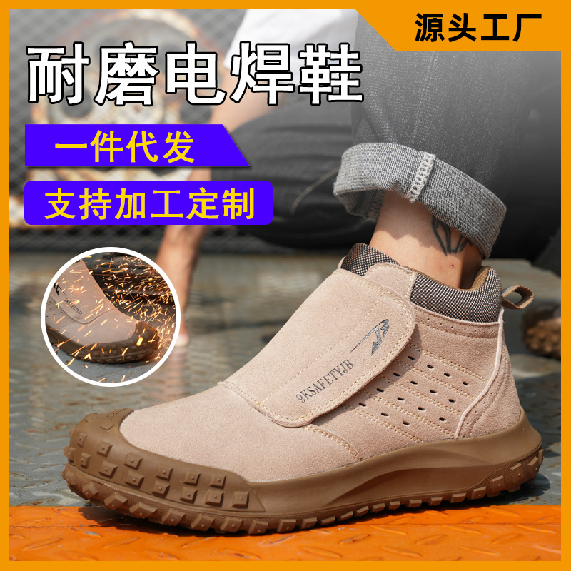 批发电焊鞋子防烫焊工鞋钢包头防砸防刺穿翻毛皮隔热安全鞋跨境