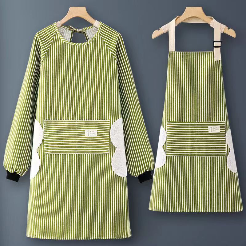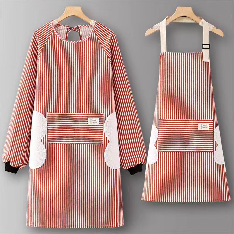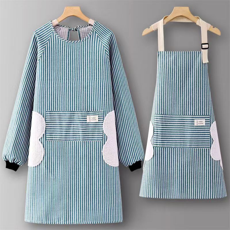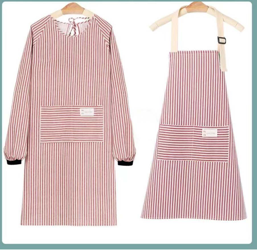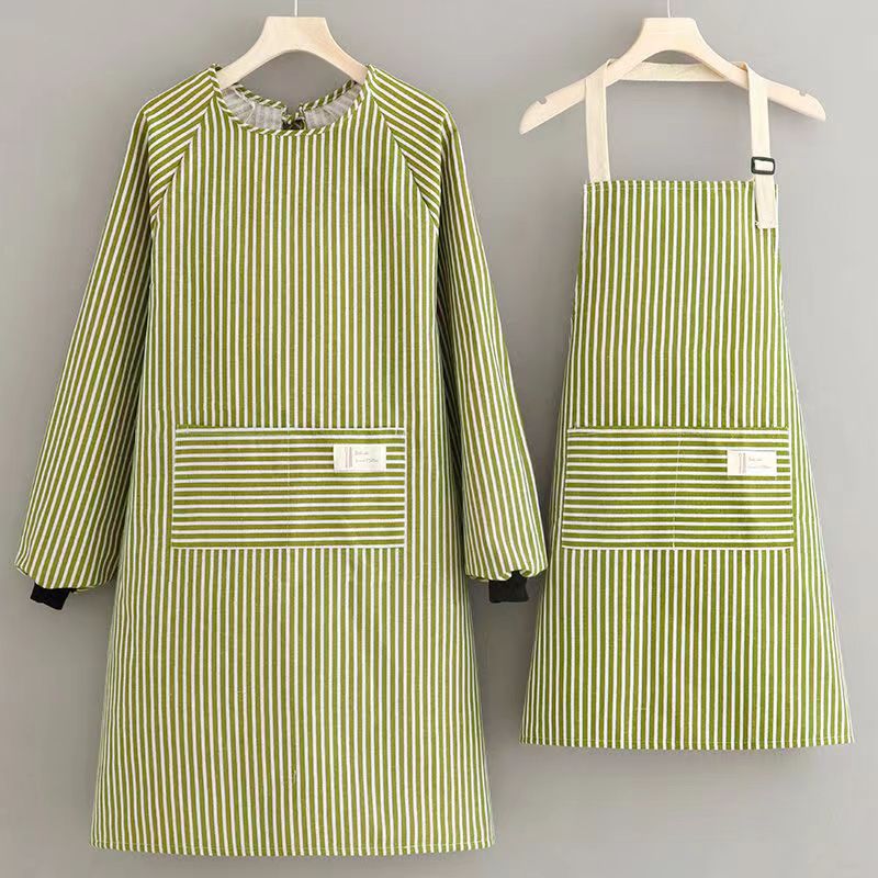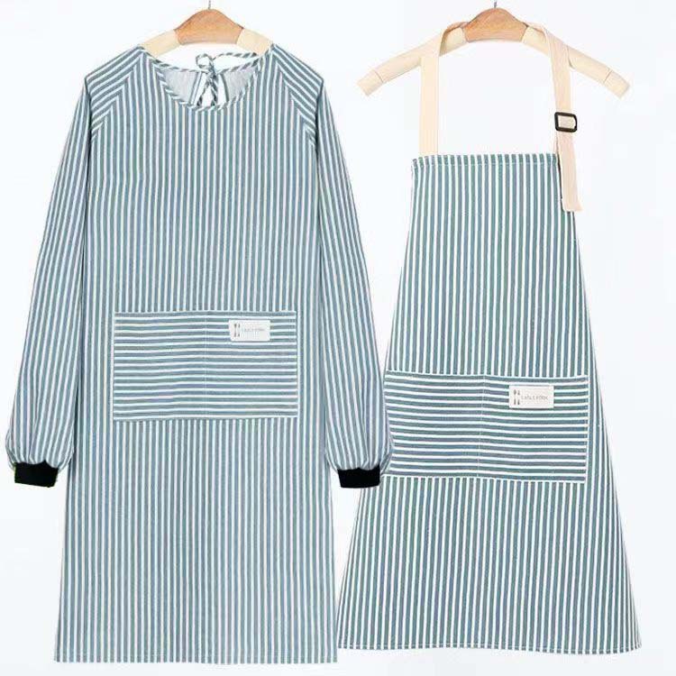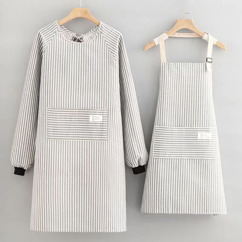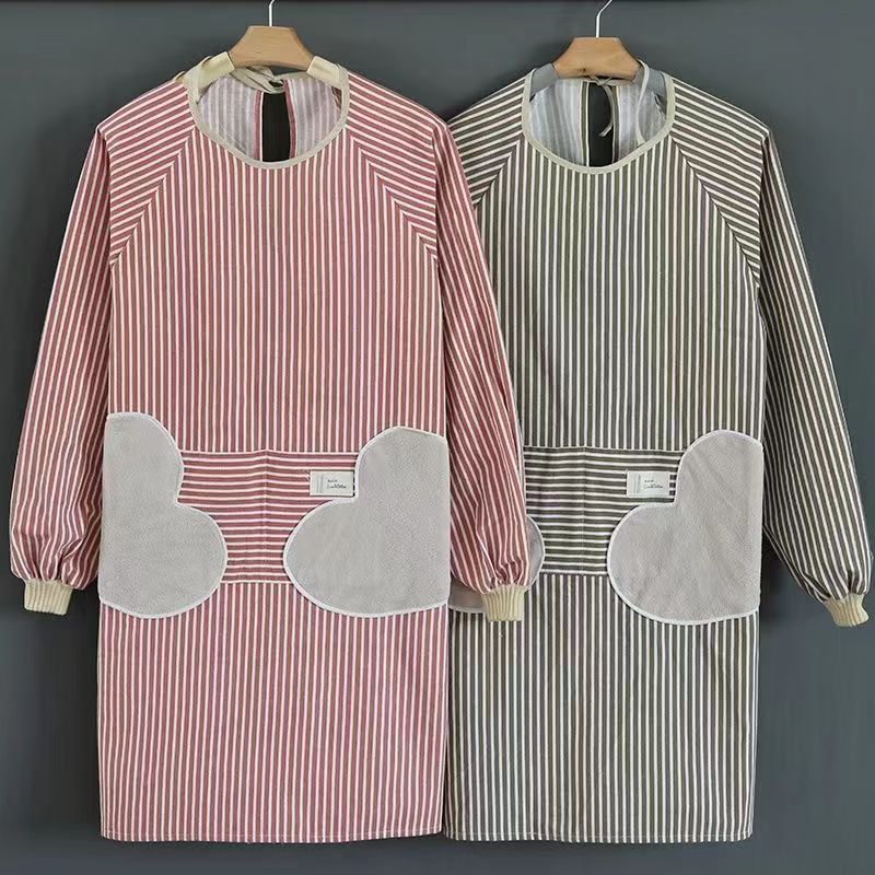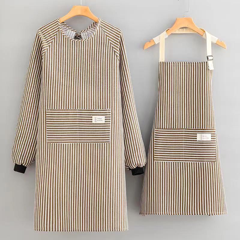 앞치마 작업복 줄무늬 캔버스 긴팔 역착용 가정용 밀크티 커피숍 작업복 로고 인쇄 가능 방오 면 100%