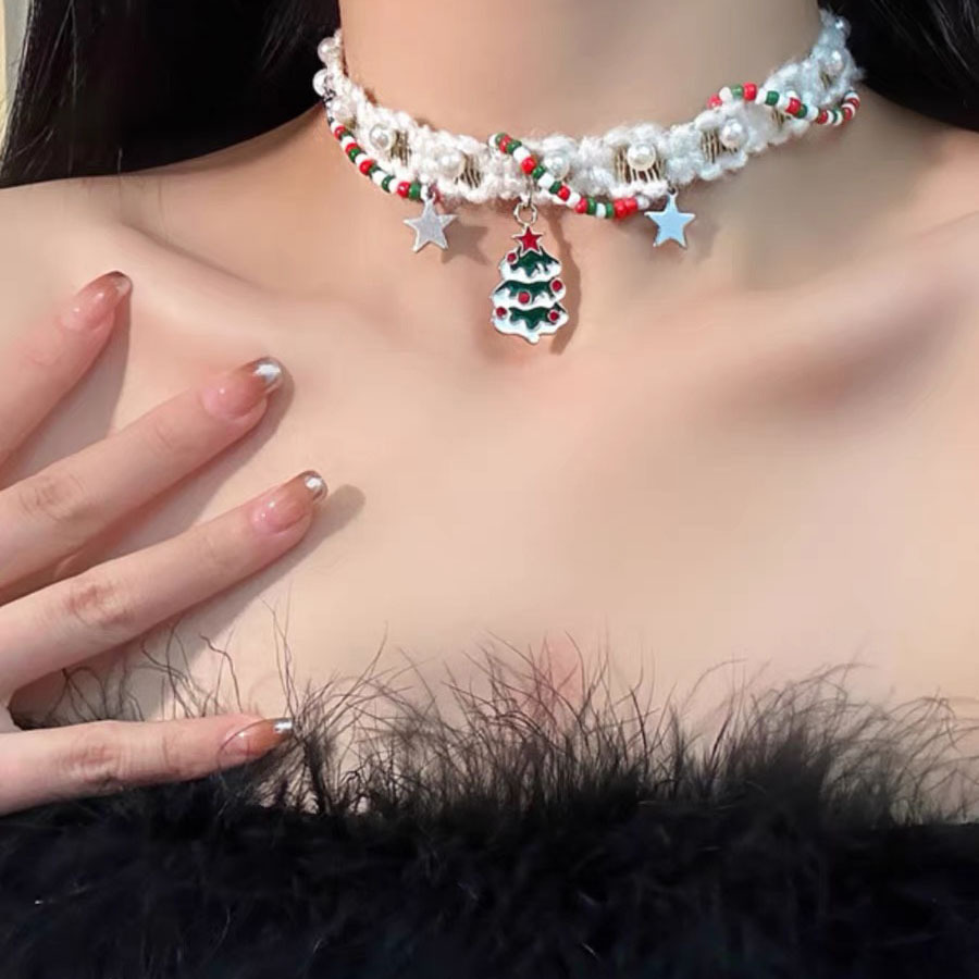 • X3475-red 봉제 크리스마스 요소 목걸이