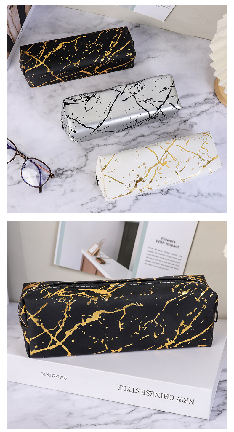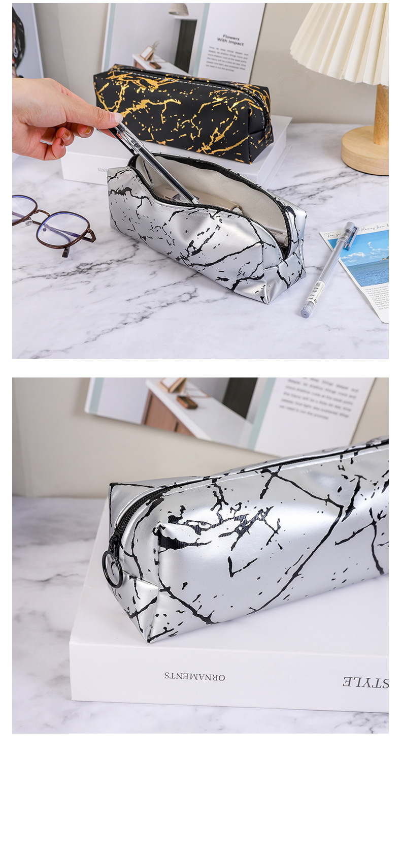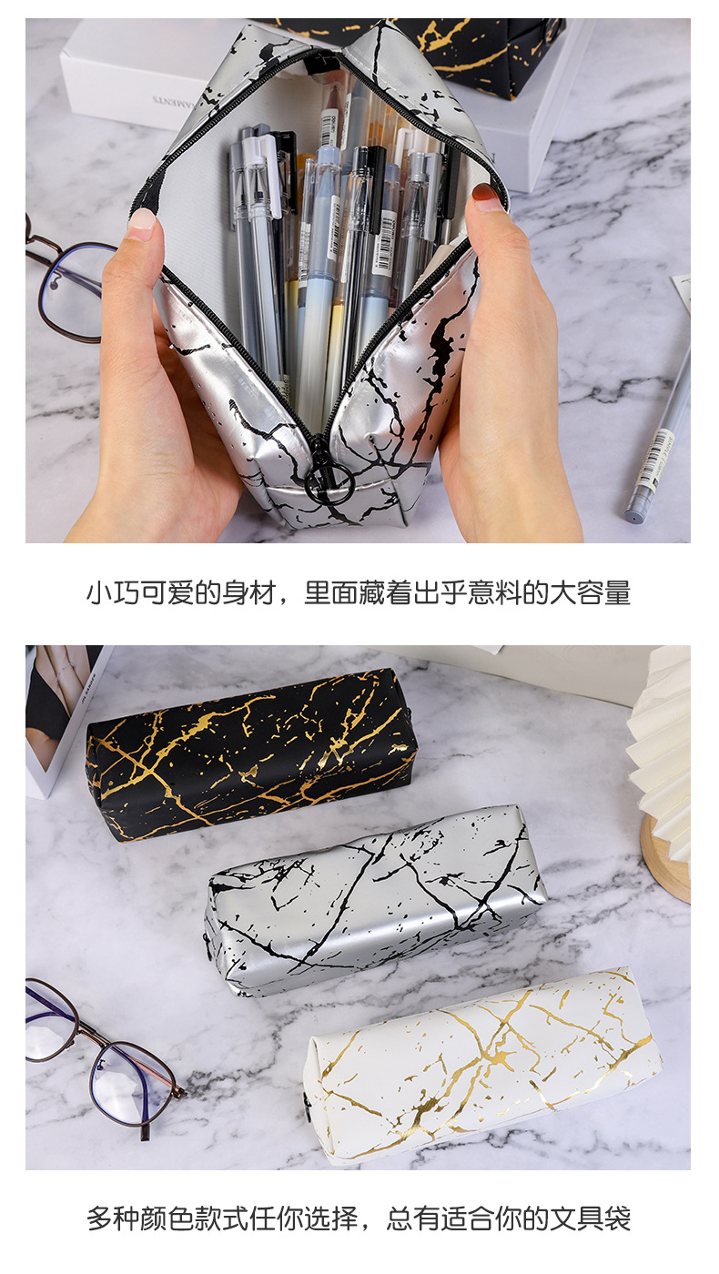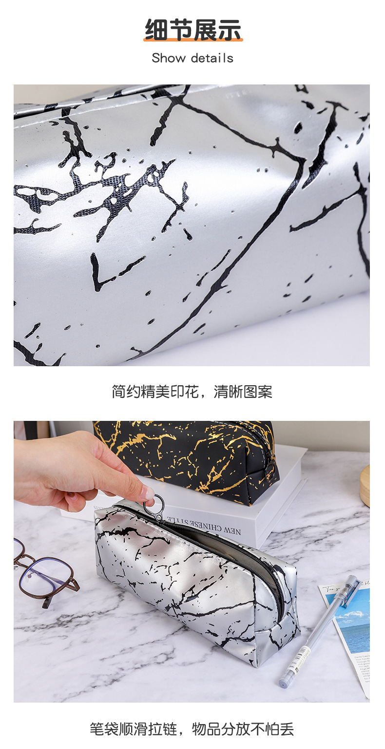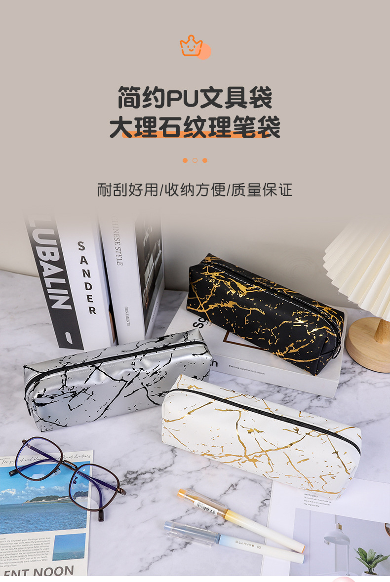 새로운 PU 연필 케이스 간단한 문구 연필 케이스 학생 패브릭 대리석 패턴 문구 연필 케이스 대용량 연필 케이스