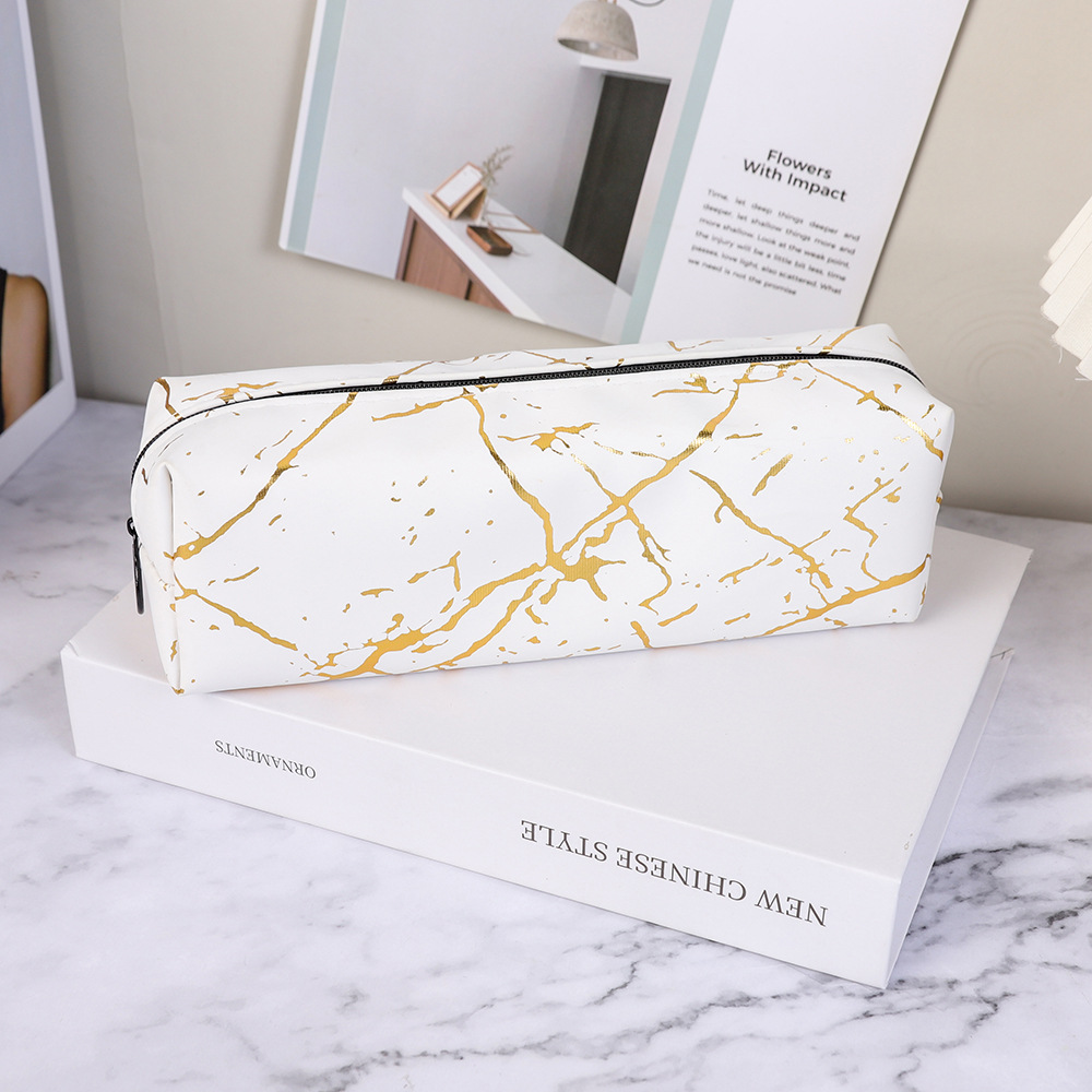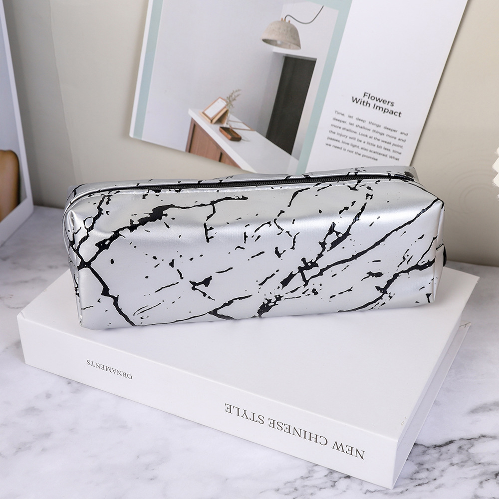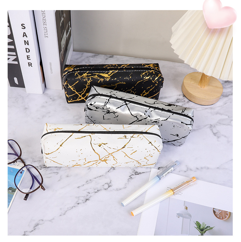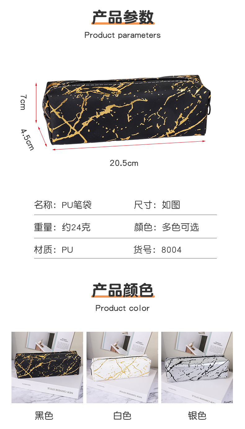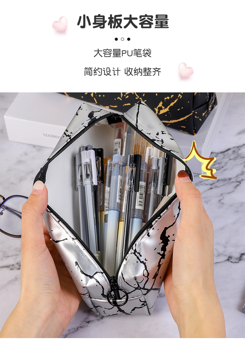 새로운 PU 연필 케이스 간단한 문구 연필 케이스 학생 패브릭 대리석 패턴 문구 연필 케이스 대용량 연필 케이스