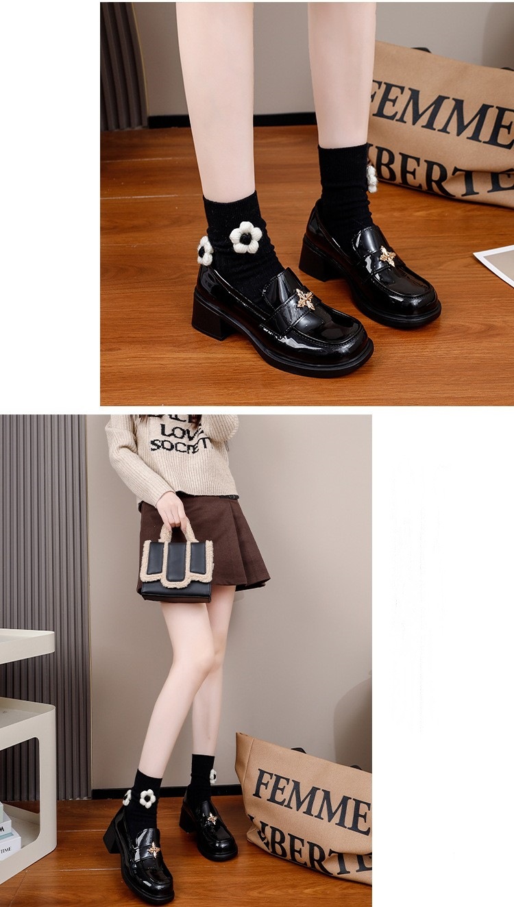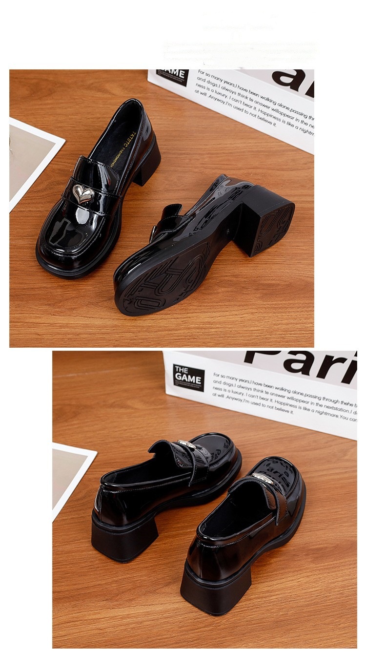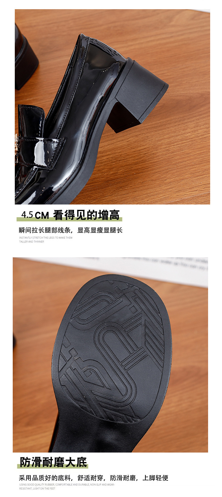 여성을위한 영국 하이힐 가죽 신발 2024 새로운 봄 단층 신발 슬립 온 프랑스 두꺼운 뒤꿈치 플랫폼 높이 증가 로퍼스토어 가기